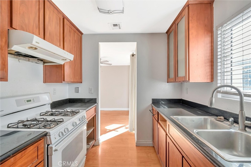 <<<ATTENTION INVESTORS AND BUYERS COSMETIC FIXER UPPER. PROBATE SALE!>>> Welcome to the 1981 built Etiwanda Tri-level townhome located in the heart of Reseda. 2 beds + 1.5 baths 1,102 SF of living space. Open floor plan with laminate floors all throughout and fireplace in living room. Bright kitchen with black granite counter tops, cherry cabinets with frosted glass. Stove, fridge and dishwasher included! Balcony next to Dining area. High ceiling in bedrooms. 2 Car Garage on ground level and washer and dryer Hookups inside garage. Community fenced Pool. Minutes to Freeways, Public library, Parks and shopping. Take advantage today!