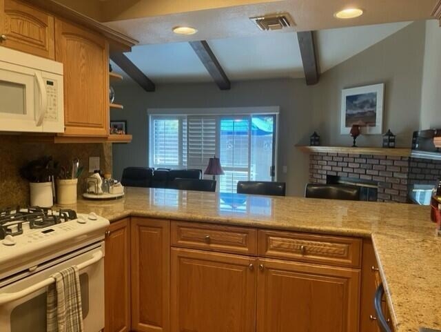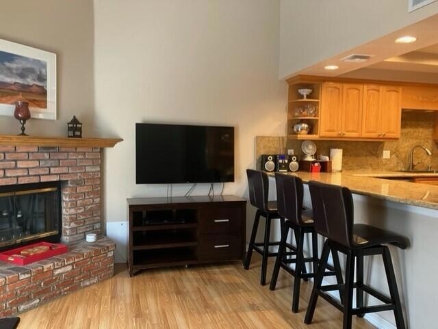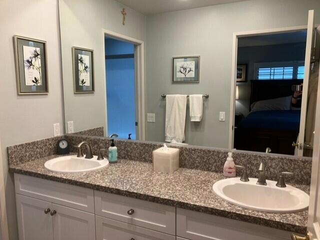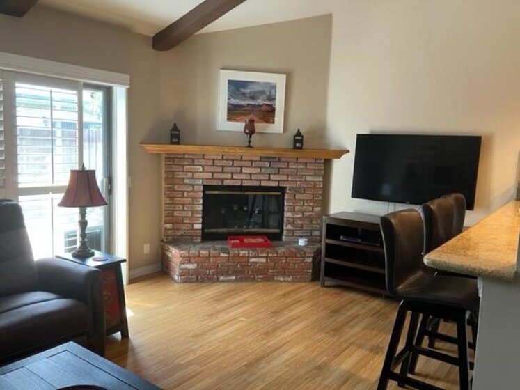 First time on the resale market! Pride of ownership throughout this fully remodeled 2 bedroom, 2.5 bath townhouse. Laminate flooring and shutters throughout. Kitchen has granite counter tops, updated cabinets, stainless sink and appliances, counter bar for additional seating. Dining room with ceiling fan lighting. Half bath off the entry and extra large coat closet for convenient storage space. Cozy family/living room off the kitchen with corner brick fireplace and wood beam ceiling. Step out into the charming and private brick patio perfect for relaxing or enjoying a barbecue with family and friends. Two en suite bedrooms upstairs. The main bedroom has a large walk-in closet, shutters, ceiling fan and laminate flooring. The main bathroom has dual vanities, soaking tub/shower combo, tile floor and a linen cabinet for extra storage. The guest bedroom has laminate flooring, shutters, ceiling fan and a large closet. Full guest bath with tile floor, tub/shower combo and an extra linen cabinet. Washer and dryer in the attached two car garage with new garage opener. Newer a/c unit, roof and nest thermostat. Enjoy the enclosed community pool, spa and restroom. Located in the gated Ashley Glen Townhouse Community and centrally located to shopping, restaurants, schools and parks. Close to Northridge Mall, Porter Ranch shopping and Cal State Northridge.