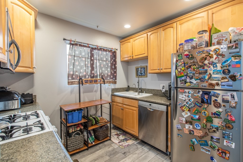Situated in the heart of Reseda. Spacious townhouse Style light and bright Condo was built in 2004 with open floor plan that offers two master bedrooms with en suite bath plus guest powder room on main level.. Kitchen with maple cabinets & granite counter tops. Ceramic Tile Floors & recently updated with laminate flooring. Recessed lighting, high ceilings, sky light, balcony off living room. Stack-able washer/dryer in unit. This unit has tandem 2 parking spaces in the community garage below. Close to the freeway, Northridge Fashion Center, Westfield Topanga, shops and dining and much more. It's an opportunity not to be missed.