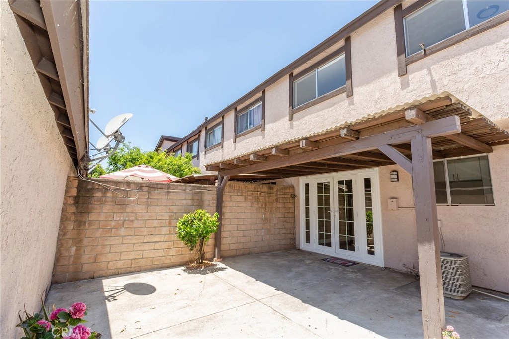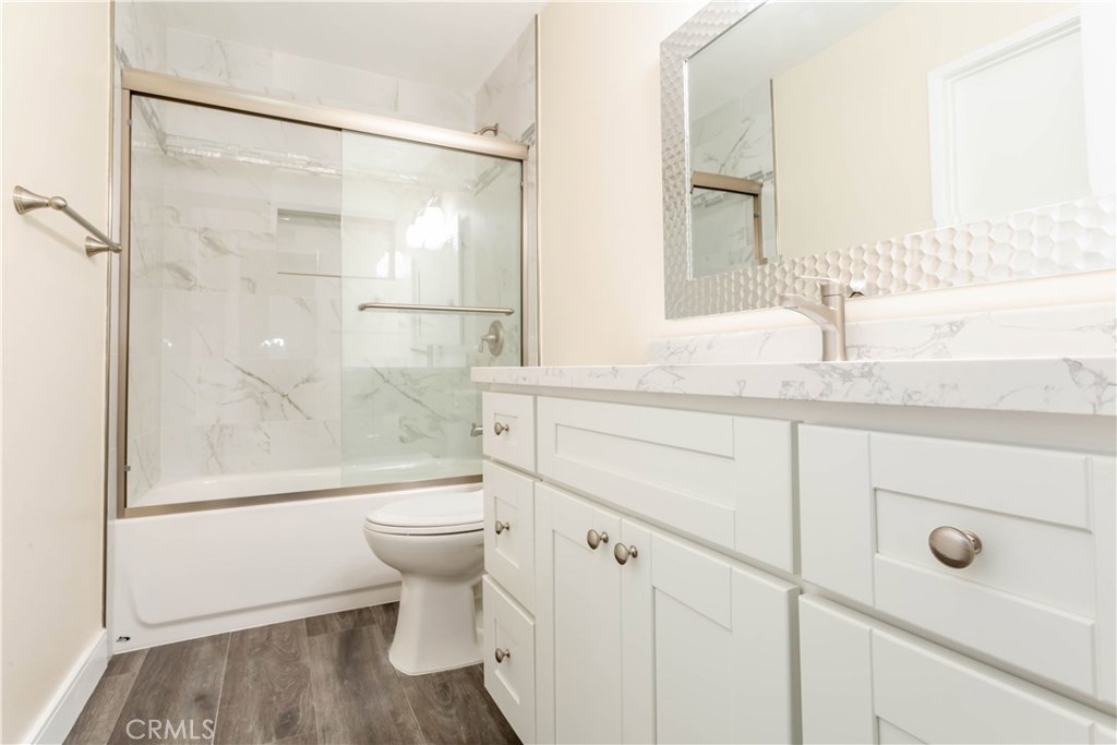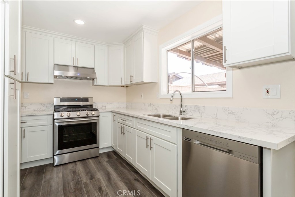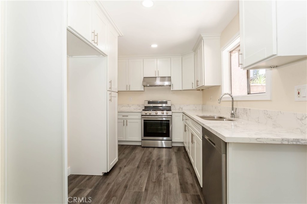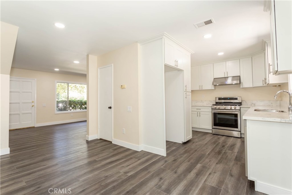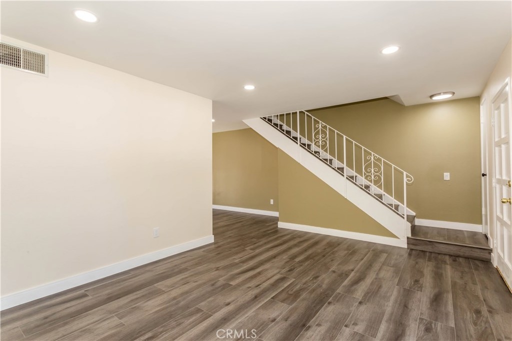 Beautiful townhouse bedroom/2 bathrooms COMPLETELY REMODELED 3 READY TO MOVE IN. Open floor plan, living room with recess lights and fireplace, fresh paint, new laminated wood floor throughout the whole unit and remodel kitchen new cabinets, stove, and dishwasher. Washer/dryer machine hook up conveniently located next to the kitchen. The master bedroom with an upgraded bathroom and ample closet space. Large private patio is perfect for entertaining with direct access to a large 2 car garage. Enjoy the complex sparkling pool and low HOA.