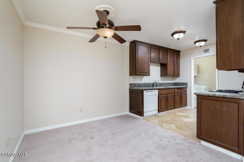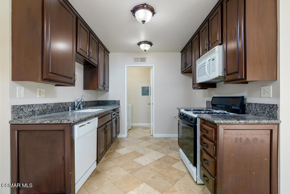 This single story, 2 bed and 1 full bath condo has a private garage and private courtyard patio. It's an end unit is in the quiet rear portion of the complex with a spacious layout that feels like a detached home.There is a large attached 2 car garage with plenty of built in shelving that leads through a private patio with garden to a double sliding door entrance into a beautifully remodeled space. This townhome features new carpet, pad and new paint throughout (January 2022), stylish crown molding & decorative designer details.This home has central heat and air, a custom mantel over the gas fireplace, a remodeled kitchen w/ travertine marble flooring, granite counter tops, dishwasher, stove, built-in microwave, custom cabinetry & storage to include a washer/dryer room. In addition, there is ample closet space throughout w/ a walk-in closet in main bedroom.Located in the back part of the well maintained community. The grounds are beautifully landscaped & include 2 pools & covered pergola dining areas. The home is located close to major shopping, local dining & multiple city parks. Minutes to the freeways (118 and 101), the local colleges; CSUN and Pierce College.