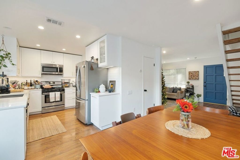 Gorgeous three bedroom, two bathroom townhome in Birchwood Community. There is lovely Aqua Guard wood flooring throughout and an open gourmet kitchen with Quartz countertops, a LG Fridge and washer/dryer. Both bathrooms are extensively remodeled with great taste and style. The living room and bedrooms are light and bright with excellent closet space. The main en-suite bedroom has double barn entry doors leading into the bath with a dual sink, and stunning subway tile shower. Features and upgrades also include newly installed AC/Furnace, all newer windows, electrical panel with high speed efficiency, and a redesigned patio which leads out to your own spacious two-car garage. This townhome is in the ideal location near the beautiful community pool, and conveniently located near Whole Foods, Trader Joe's, and the Topanga Mall!