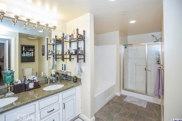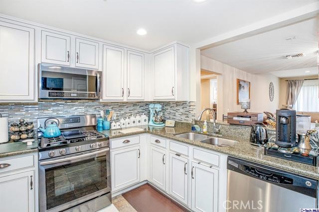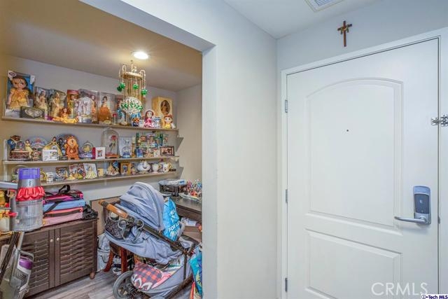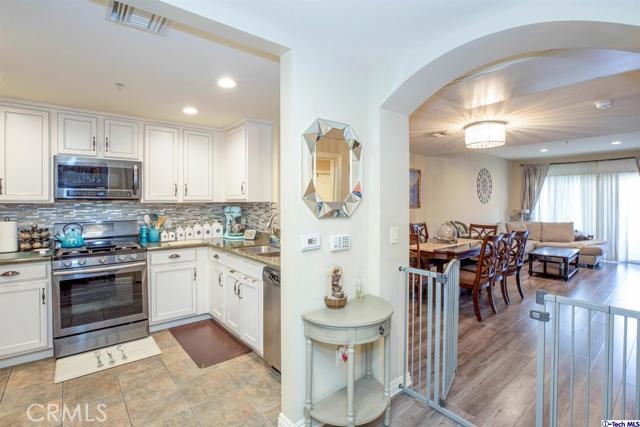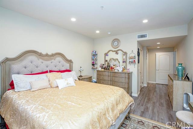 Welcome to this updated condo located in a wonderful location of Reseda! This security building has so much to offer including six guest parking spots plus one handicap parking spot inside the garage, two back to back parking spots inside the garage, rooftop area where you can entertain family and friends, brand new security cameras throughout the building, elevator for easy access, two stairways from each side of the building, gated garden in the back of the building, trash shoot and so much more! This second floor unit includes grey laminate floors in the living room and bedrooms, tile floors in the bathrooms, new recess lighting in both bedrooms, chandelier in the dining room, master bedroom with an on-suite bathroom which includes a separate stand up shower and tub and his and her sinks. The master bathroom also has a large walk in closet! The second bedroom also includes a walk in closet. The kitchen has stainless steel appliances including a refrigerator, range with hood, microwave and dishwasher. The kitchen features white cabinetry with bronze hardware and new backsplash. If there isn't enough space for entertaining in the rooftop area of this complex, there is a private balcony just for the unit that can also be used for entertaining friends and family, which has a hookup for overhead lights. Double pane windows with roller shades throughout the house and a Brinks alarm system! Low HOA of $376.13 per month. Don't miss out!