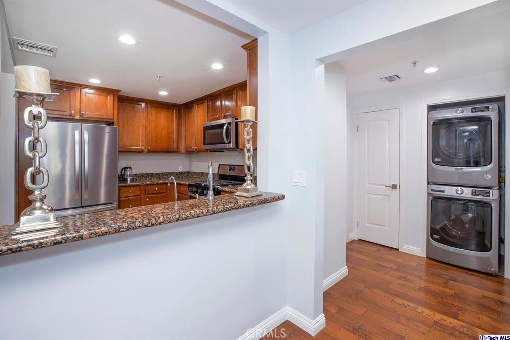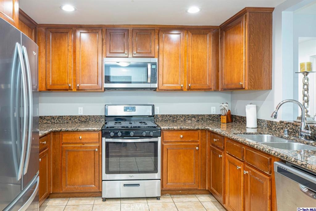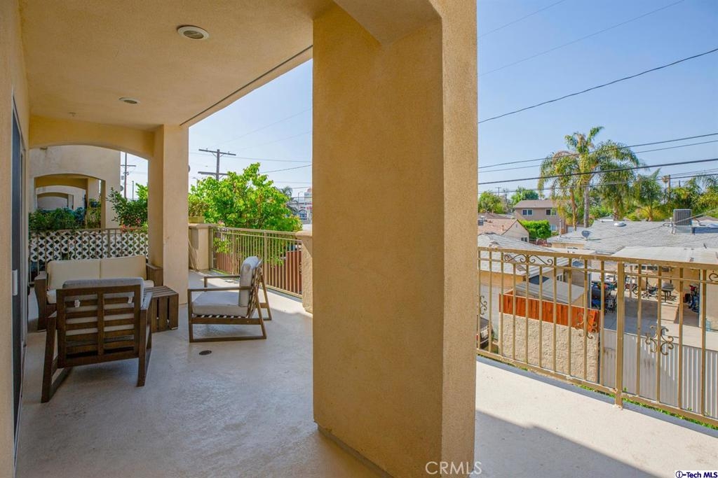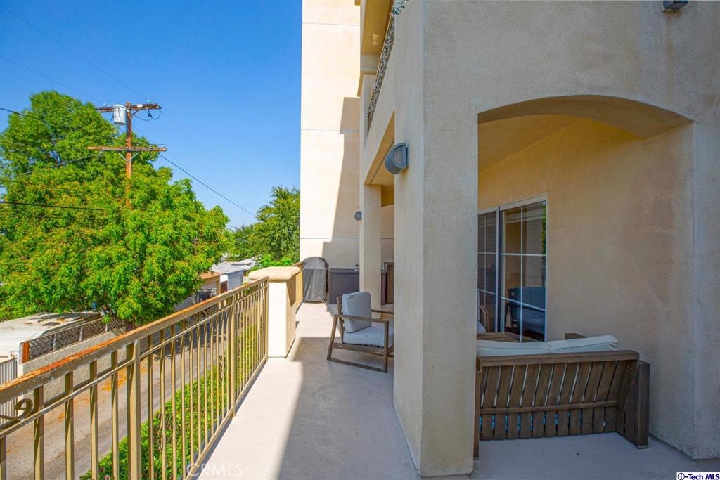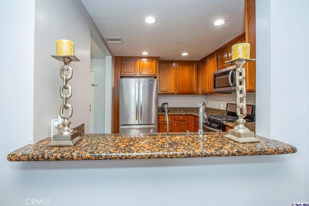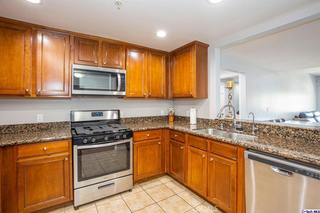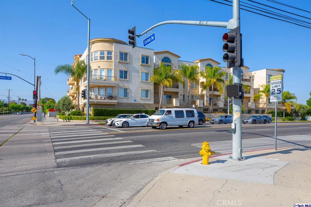 Welcome to this updated condo located in a wonderful location of Reseda! This security building has so much to offer including six guest parking spots plus one handicap parking spot inside the garage, two back to back parking spots inside the garage, rooftop area where you can entertain family and friends, brand new security cameras throughout the building, elevator for easy access, two stairways from each side of the building, gated garden in the back of the building, trash shoot and so much more! The unit includes hardwood floors in the living room, porcelain tile floors in the bathrooms, laminate flooring in the bedrooms, master bedroom with an on-suite bathroom which includes a separate stand up shower and tub and his and her sinks. The master bathroom also has a large walk in closet! The second bedroom also includes a walk in closet. The unit also includes a den that can be used as a play room, storage for kids toys, etc. Other features include a washer/dryer, the kitchen has stainless steel appliances including a refrigerator, range with hood, microwave and dishwasher. The kitchen features granite countertops and brown cabinetry. If there isn't enough space for entertaining in the rooftop area of this complex, there is a private terrace just for the unit that can also be used for entertaining friends and family. Double pane windows with roller shades throughout the house and a Brinks alarm system! Low HOA of $376.13 per month. Don't miss out!