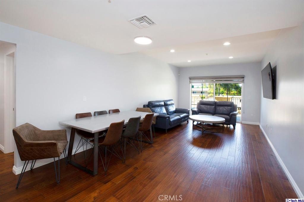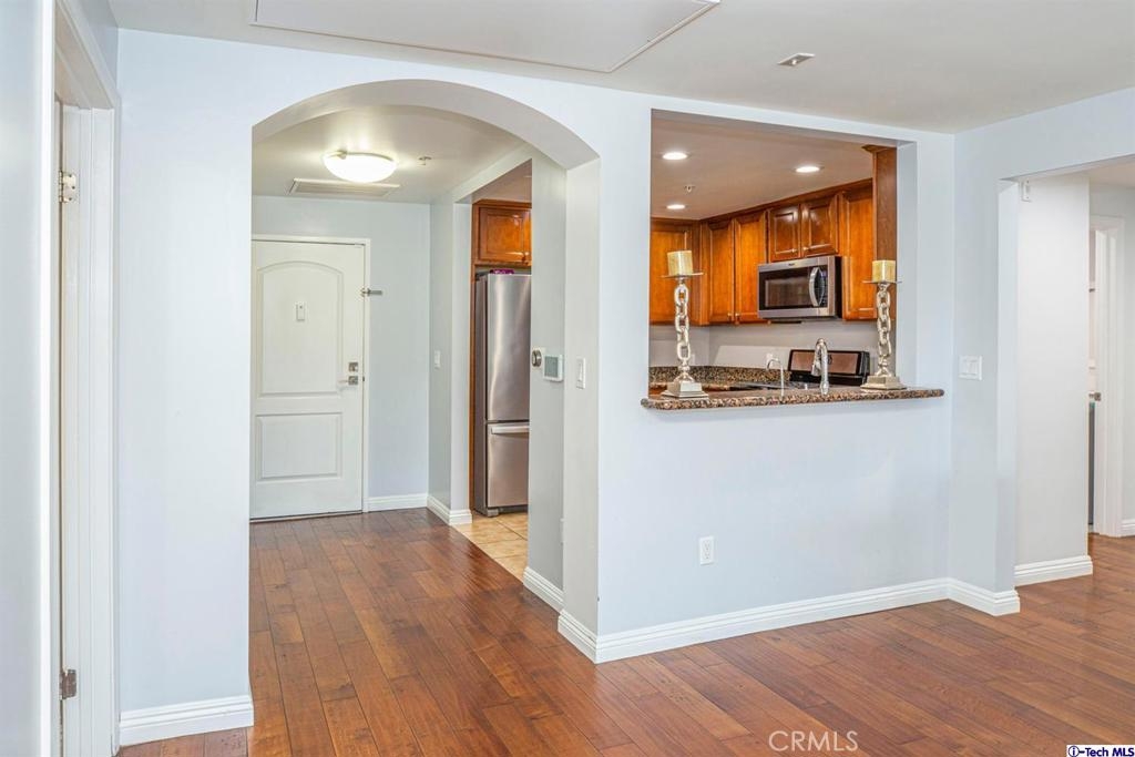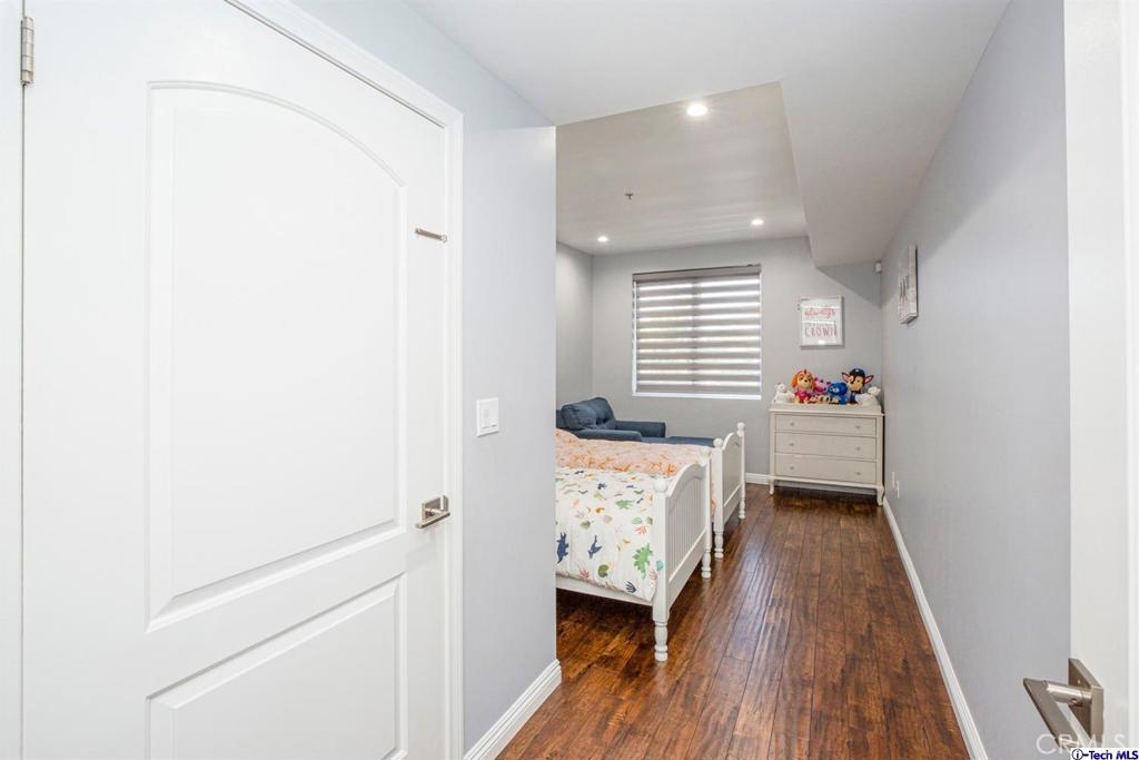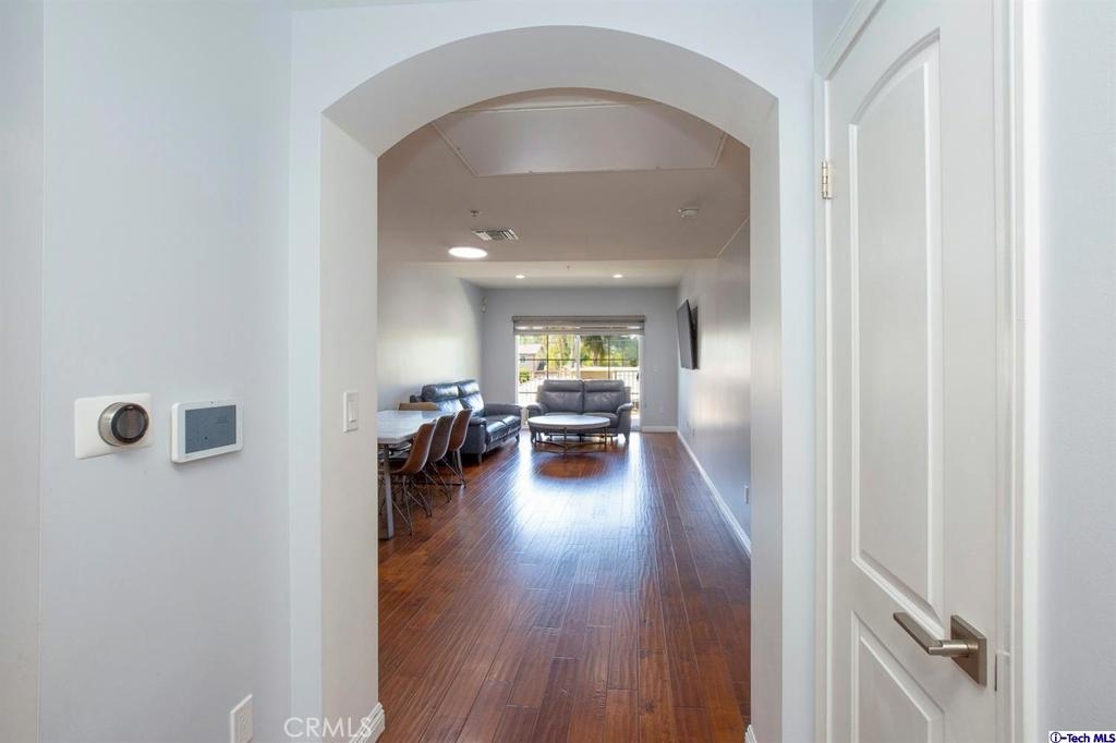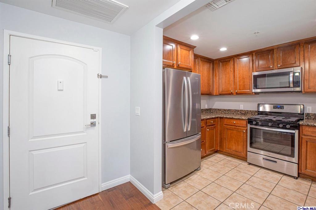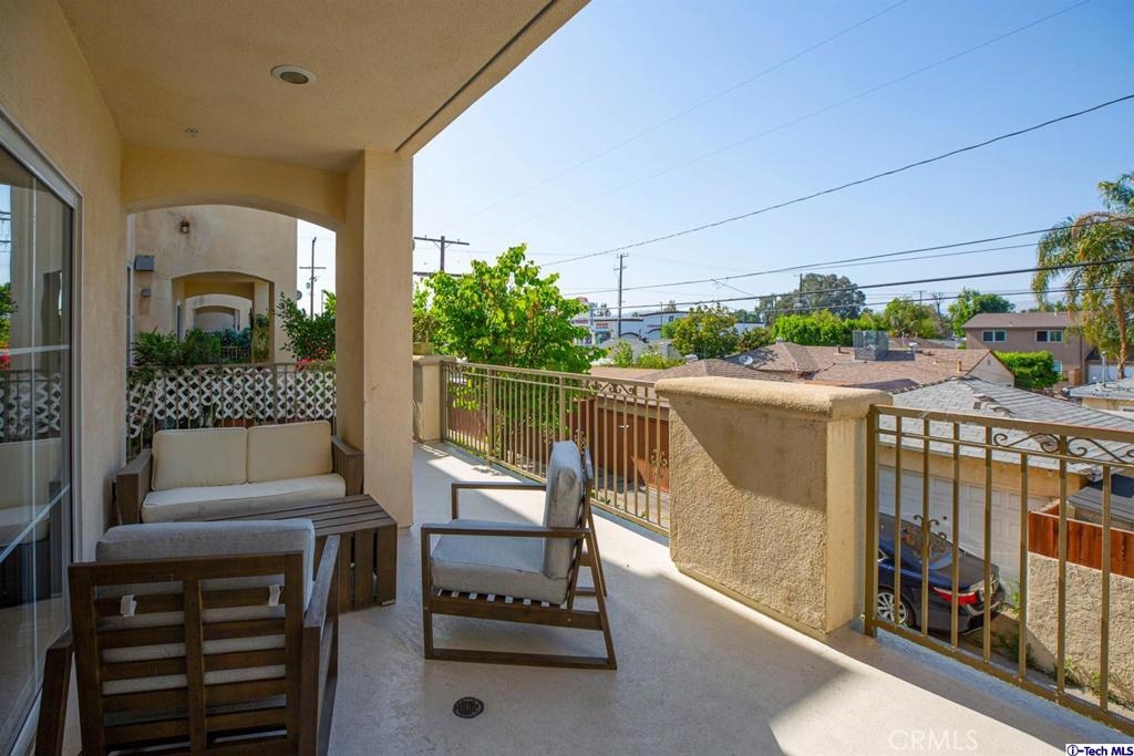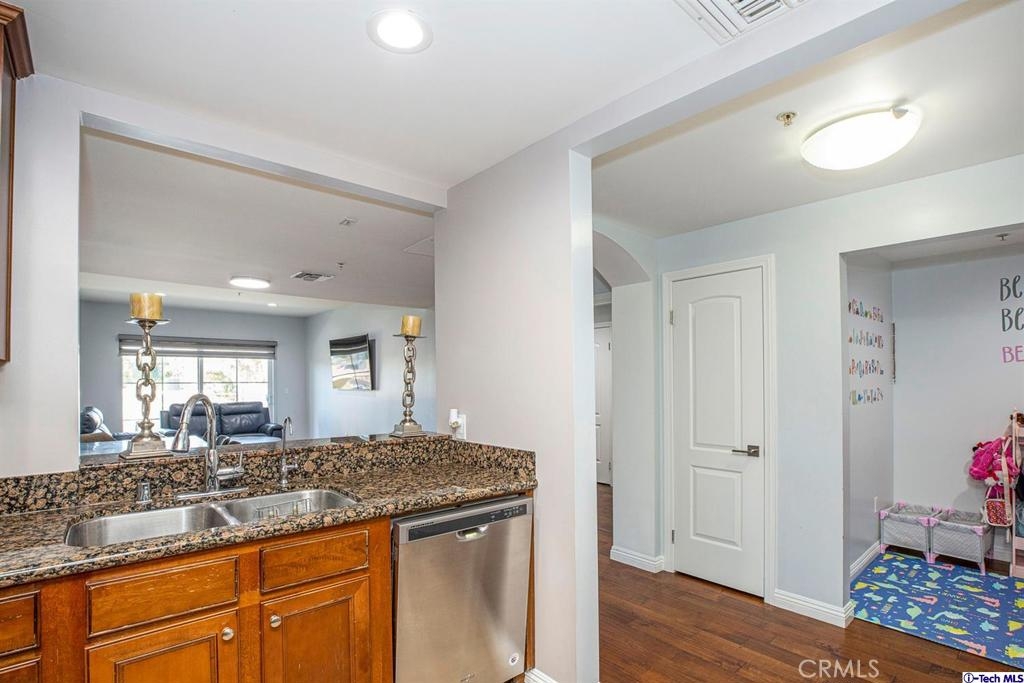 Welcome to this updated condo located in a wonderful location of Reseda! This security building has so much to offer including six guest parking spots plus one handicap parking spot inside the garage, two back to back parking spots inside the garage, rooftop area where you can entertain family and friends, brand new security cameras throughout the building, elevator for easy access, two stairways from each side of the building, gated garden in the back of the building, trash shoot and so much more! The unit includes hardwood floors in the living room, porcelain tile floors in the bathrooms, laminate flooring in the bedrooms, master bedroom with an on-suite bathroom which includes a separate stand up shower and tub and his and her sinks. The master bathroom also has a large walk in closet! The second bedroom also includes a walk in closet. The unit also includes a den that can be used as a play room, storage for kids toys, etc. Other features include a washer/dryer, the kitchen has stainless steel appliances including a refrigerator, range with hood, microwave and dishwasher. The kitchen features granite countertops and brown cabinetry. If there isn't enough space for entertaining in the rooftop area of this complex, there is a private terrace just for the unit that can also be used for entertaining friends and family. Double pane windows with roller shades throughout the house and a Brinks alarm system! Low HOA of $376.13 per month. Don't miss out!