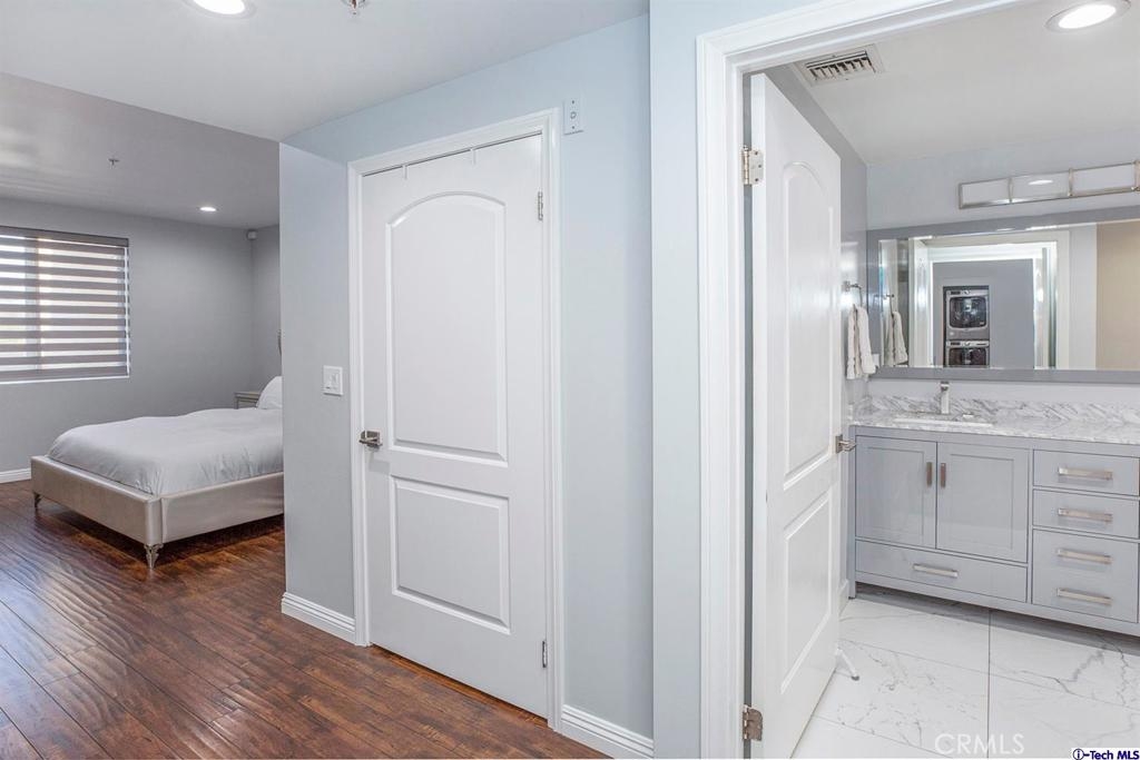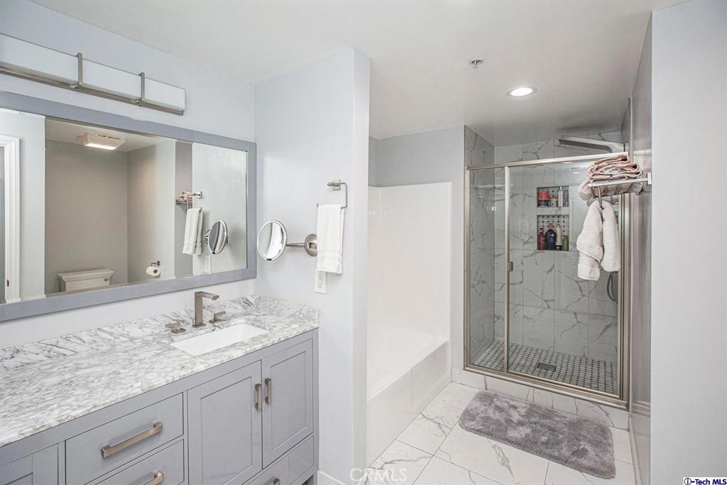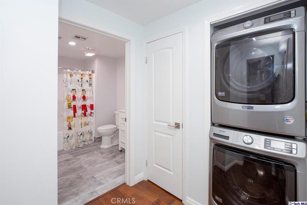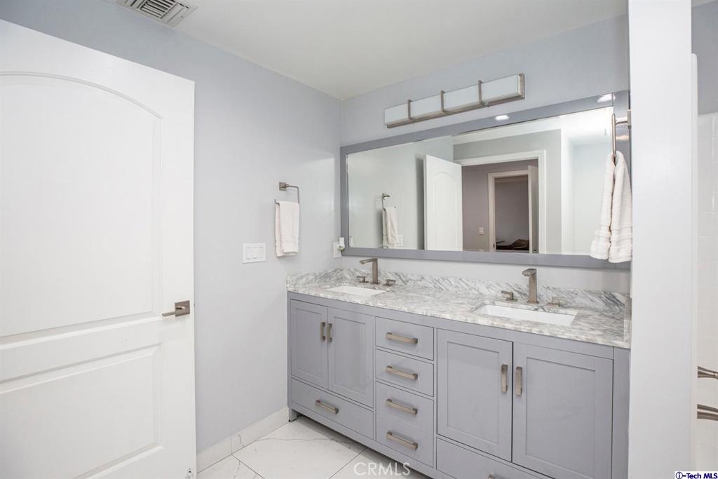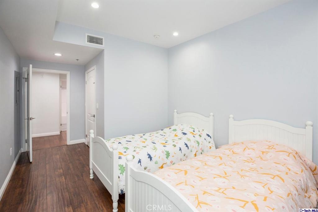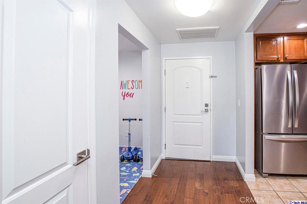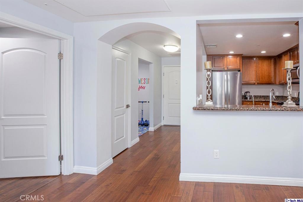 Welcome to this updated condo located in a wonderful location of Reseda! This security building has so much to offer including six guest parking spots plus one handicap parking spot inside the garage, two back to back parking spots inside the garage, rooftop area where you can entertain family and friends, brand new security cameras throughout the building, elevator for easy access, two stairways from each side of the building, gated garden in the back of the building, trash shoot and so much more! The unit includes hardwood floors in the living room, porcelain tile floors in the bathrooms, laminate flooring in the bedrooms, master bedroom with an on-suite bathroom which includes a separate stand up shower and tub and his and her sinks. The master bathroom also has a large walk in closet! The second bedroom also includes a walk in closet. The unit also includes a den that can be used as a play room, storage for kids toys, etc. Other features include a washer/dryer, the kitchen has stainless steel appliances including a refrigerator, range with hood, microwave and dishwasher. The kitchen features granite countertops and brown cabinetry. If there isn't enough space for entertaining in the rooftop area of this complex, there is a private terrace just for the unit that can also be used for entertaining friends and family. Double pane windows with roller shades throughout the house and a Brinks alarm system! Low HOA of $376.13 per month. Don't miss out!