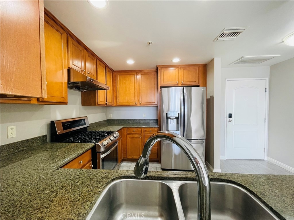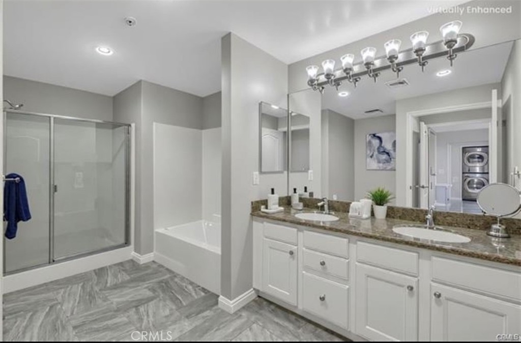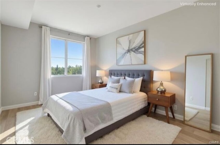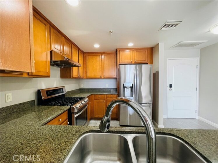 Modern, Sophisticated and Spacious Top-floor unit, built in 2007. The Corbin Villa building boasts modern life style reflects true pride of ownership. This top floor residence offers exceptional privacy and sophistication, featuring soaring vaulted ceiling that fills the home with aboundant natural light. The upgraded kitchen showcases a modern stainless apron-front sink, coordinating appliances, and ample counter space. Contemporary laminate flooring, smooth ceilings, recessed lighting give the home a clean, modern feel.The primary suite offers a true sense of retreat, featuring a generous closet space and a spa-inspired en-suite with dual vanities, a separate soaking tub, and a stand alone shower. Additional storage can be found throughout the unit, along with an in-unit washer/dryer for added convenience.Two assigned spaces in a secured underground garage and six guest parking spots make parking effortless. Ideally located for quick access to all parts of the Valley, this penthouse condo combines comfort, style, and practicality—perfect as your next home or an exceptional investment opportunity.