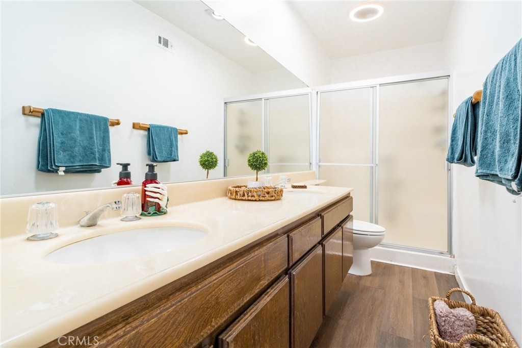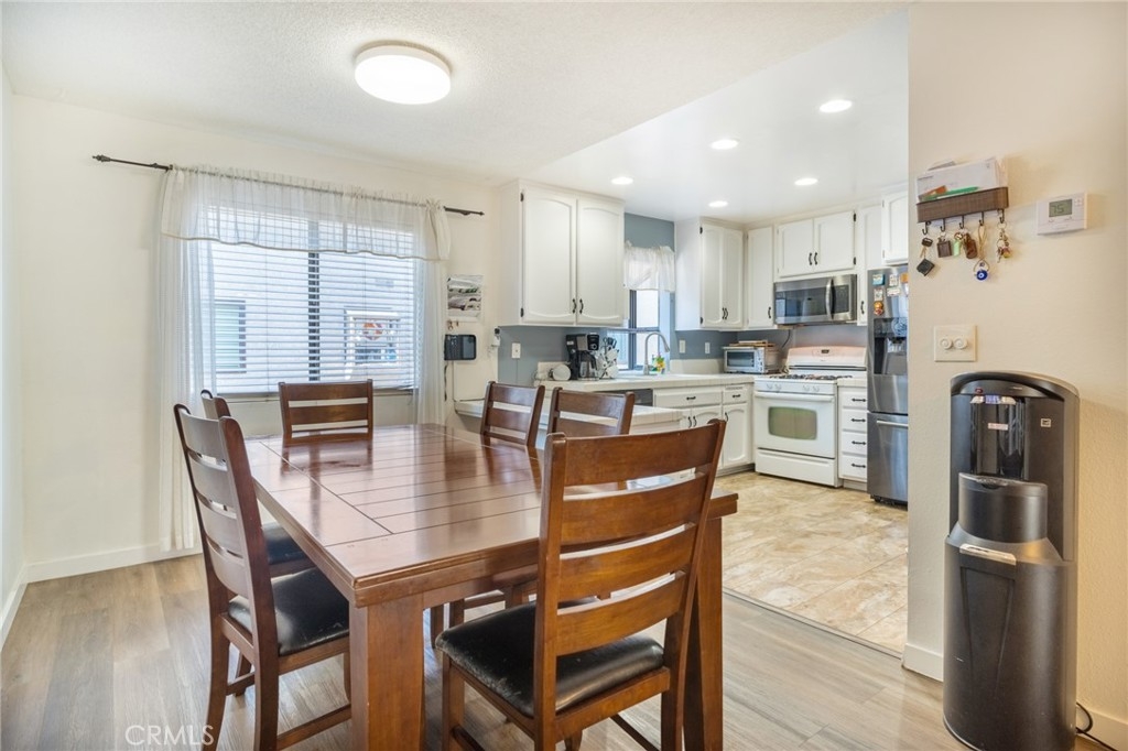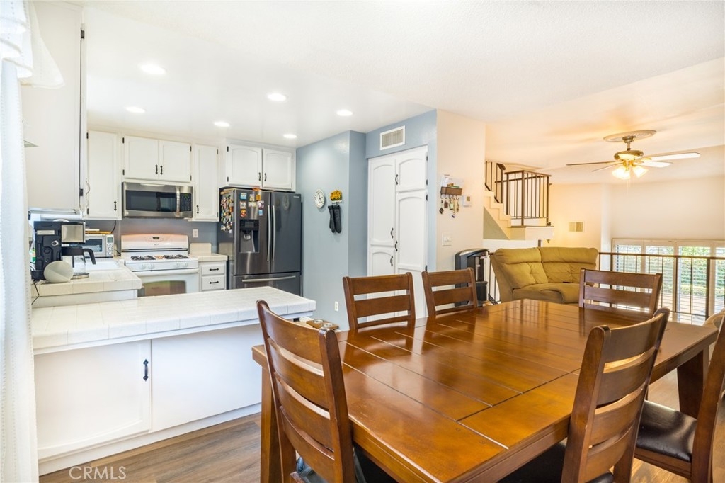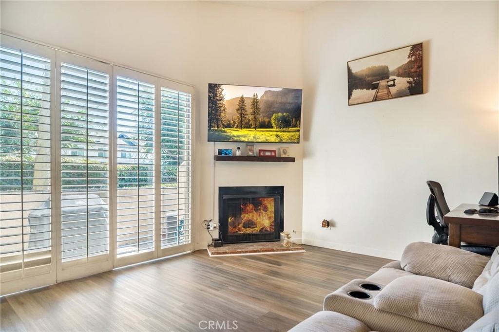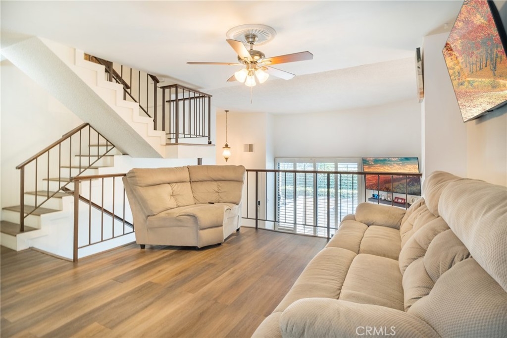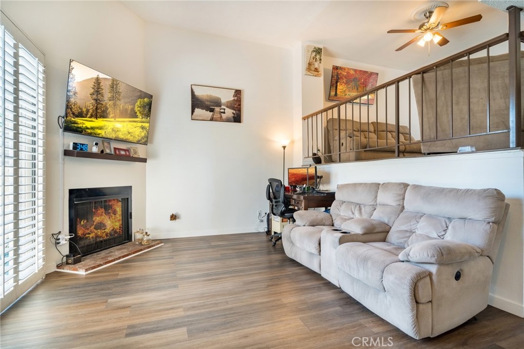 Welcome to this lovely townhome nestled in a charming community with lush green landscape surrounding an inviting living space. As you step inside, you are greeted by a warm and inviting living room adorned with plantation shutters that seamlessly flow into a good size patio, perfect for relaxing or entertaining. The home boasts high ceilings, creating an open and airy feel, with a second living room/family room that connects to a dining room for formal gatherings while opening up to a bright kitchen featuring a breakfast bar ideal for casual dining with barstools. Throughout the home, you'll find lovely laminate flooring and ceiling fans are thoughtfully featured in the bedrooms, ensuring comfort all year round. Retreat to the primary bedroom offering dual sinks, a sizable walk-in closet, and a lovely dual sink primary en-suite bath for added convenience and relaxation. Outside, enjoy the community's pool and spa, perfect for unwinding after enjoying the comfort of this inviting townhome. Don't miss the chance to make this charming property your new home sweet home! Addition features include ample guest parking and a direct access two car garage.