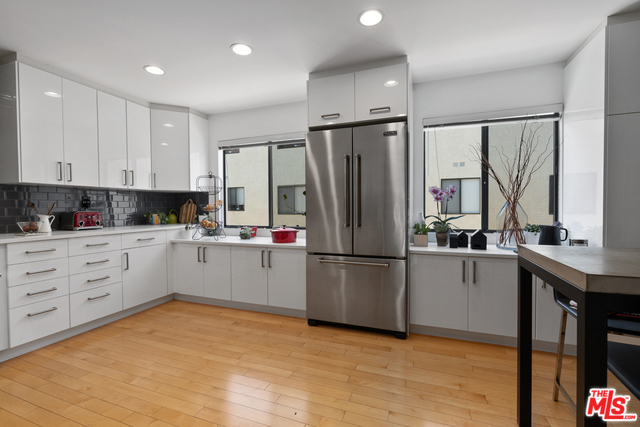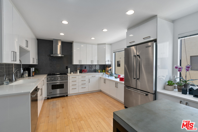 Designed with an eye for beauty & style, this rare beauty is a must see in the desirable Kingston Townhome Complex. Lofty ceilings & clerestory windows set the stage for this beautiful multi-level redone townhome. Attention to detail is evidenced by the stunning eat-in cooks' kitchen with Viking & Bosch equipment, Caesarstone counter tops & custom storage solutions. Canadian maple floors & modern stainless-steel banisters throughout are accented by architectural light fixtures. A wood burning fireplace creates additional ambiance in the living & and dining rooms. The Loft can be used for an office, family room, guest room or any way your heart desires. The en-suite master with a vaulted ceiling, is flooded with light & has an over-sized walk-in closet. Large 2 car direct access garage provides amazing storage. Views of the landscaped grounds can be seen from the windows throughout & from the private patio. California lifestyle surround the sparkling pool, just like a movie.