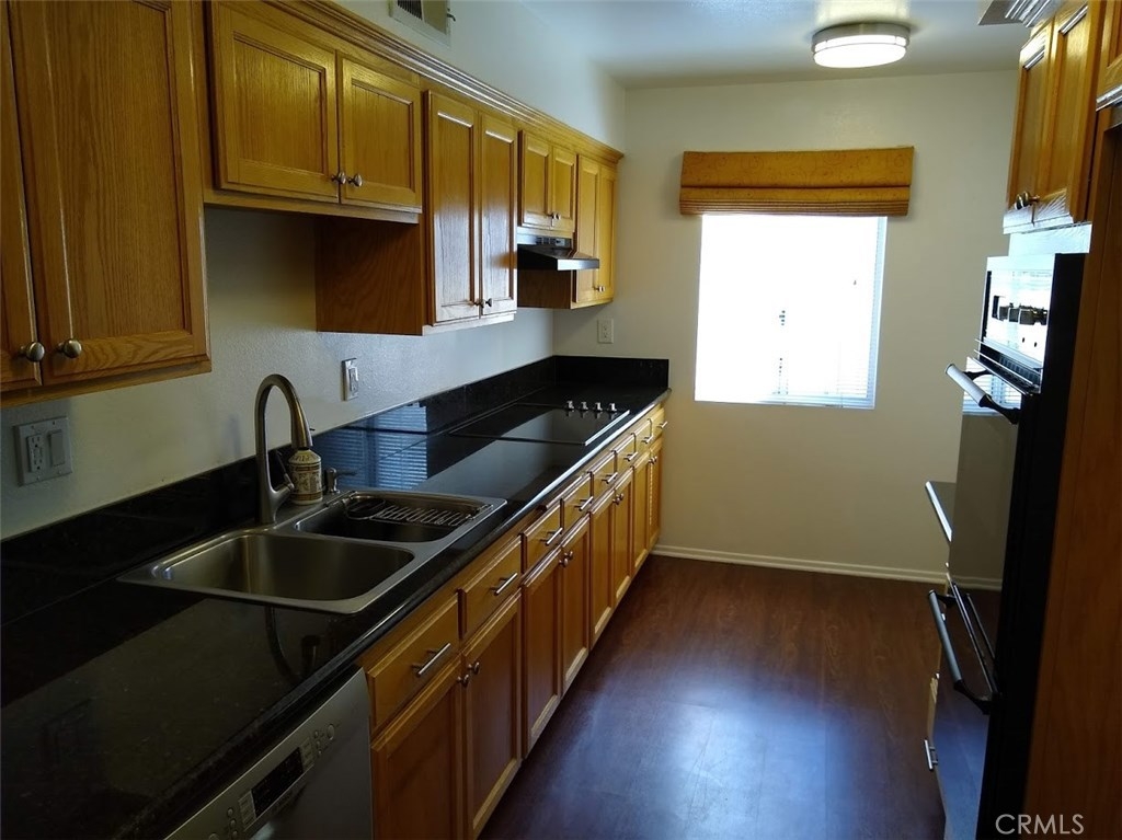 Welcome to Northridge Village Townhomes, a beautifully maintained and gated complex in Northridge/Reseda. The address is Reseda, but Google Maps says it is Northridge. Secure building with private patrol. This is a huge move-in ready 1573 square feet townhome with 3 bedrooms and 2.5 bath. Beautifully updated a year ago with smooth ceilings, designer lights, modern paint, kitchen with granite countertop, mirrored sliding closet doors, and new flooring throughout. Large kitchen with breakfast nook and double oven. Tons of storage space. Huge 2 car garage with direct access to home. Full size washer and dryer hookup. Get the BBQ going in your own large private patio. Lots of natural light due to the east-west orientation. Master suite is a WOW!! It is grand with walk-in closet, sliding door closet, and makeup table with large mirror. Large balcony off of master suite and view of the green center courtyard with grass and beautiful large trees. This is an extra special unit compared to most others in the complex because the garage door faces the alley. You never have to enter main gate or drive through the complex to get to your home. It makes it feel like a single family home. It is also close to all the HOA amenities, the green center yard, pools, kids playground, and clubhouse with pool tables and party room. Roof scheduled to be replaced in September. Special assessment has already been paid in full. Very low monthly HOA dues.