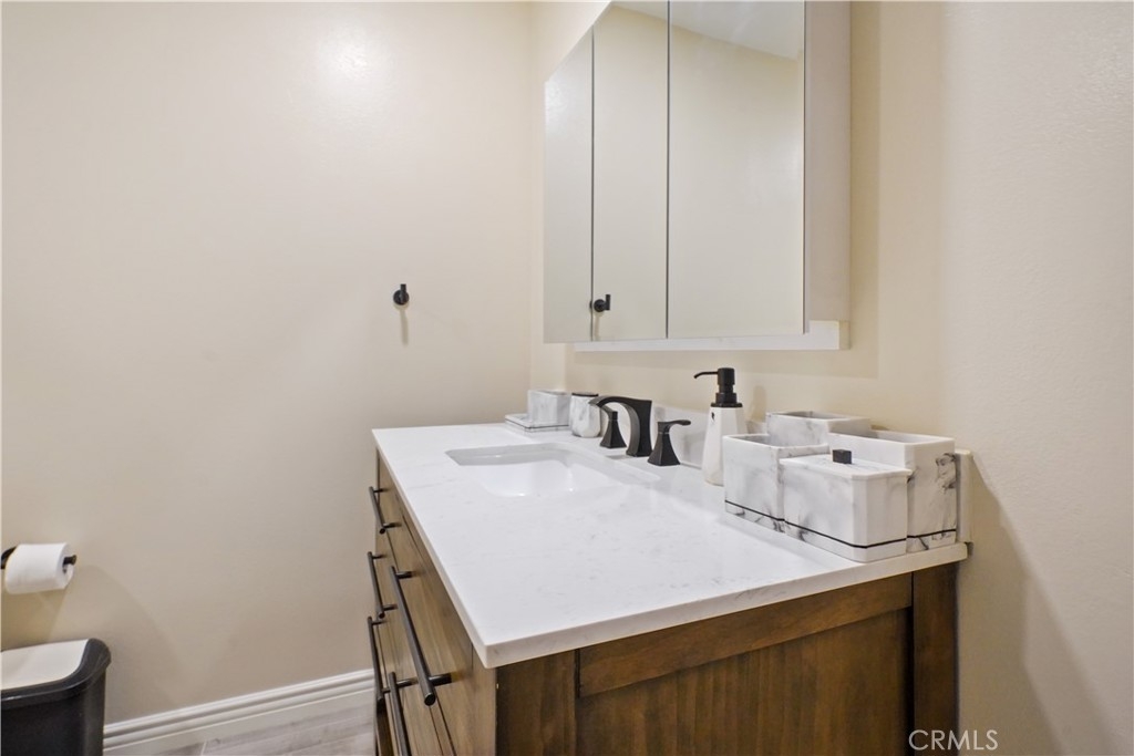 Gorgeously updated 4 bed, 2 ½ bath corner unit, in a wonderful location within the complex. No neighbors on 3 sides and faces greenbelt and the community pools. The complex is situated right behind The Northridge hospital and within few miles of California State University Northridge. The home has been updated over the years with Vinyl windows and sliders, newer water heater, updated kitchen with granite counters and stainless steel appliances, tile flooring in kitchen and bathrooms, laminate flooring throughout the home, recessed lights and updated bathrooms. The entire home just got a fresh coat of paint. There is a large patio in the front for entertaining family and friends for summer BBQ. There is an attached 2 car garage with washer/dryer hookup. The complex is gated and there is an onsite security, there is also a community recreation room, one large and two smaller pools and a play area included in the HOA. All 4 bedrooms are upstairs, the large primary suite has an attached bathroom and a nice size balcony facing the lawn and the pool area with an unobstructed view. The remaining spacious 3 bedrooms share a hall bath. The community is close to public transportation, CSUN and the Northridge hospital. A MUST SEE !!