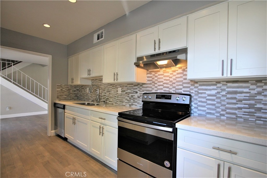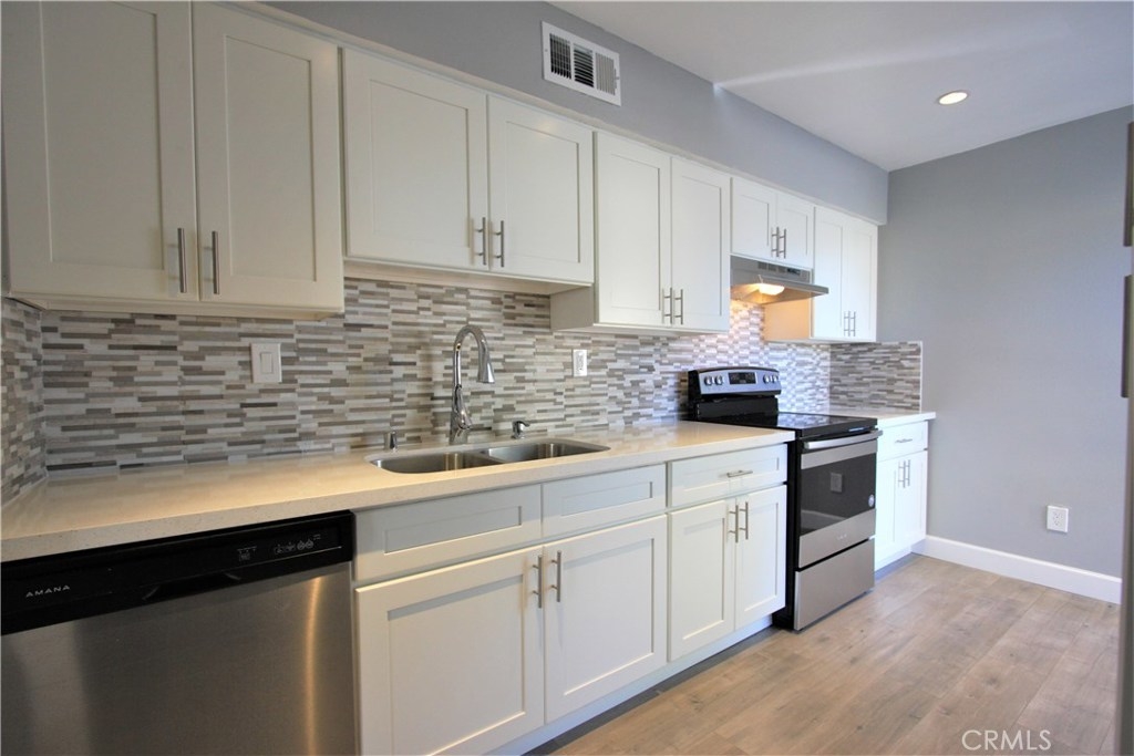 Remodeled 4 Bedroom corner townhouse with attached garage. Located in a gated community, this light and bright corner unit features a remodeled kitchen with new cabinets, quartz counter tops and stainless steel appliances, huge living room with fireplace and sliders to private patio, dining area off kitchen, large master suite with high ceilings, his and hers closets, computer area, remodeled bathroom with double sinks and its own balcony. The 3 additional upstairs bedrooms are spacious and share a remodeled full bath in the hallway. There is a half bath and storage closet downstairs as well as access to the private attached 2 car garage with laundry hook-ups and storage cabinets. The Northridge Village Townhomes Community offers pools, spa, club house and children's play ground. Close to public transportation, shopping and Northridge Hospital.
