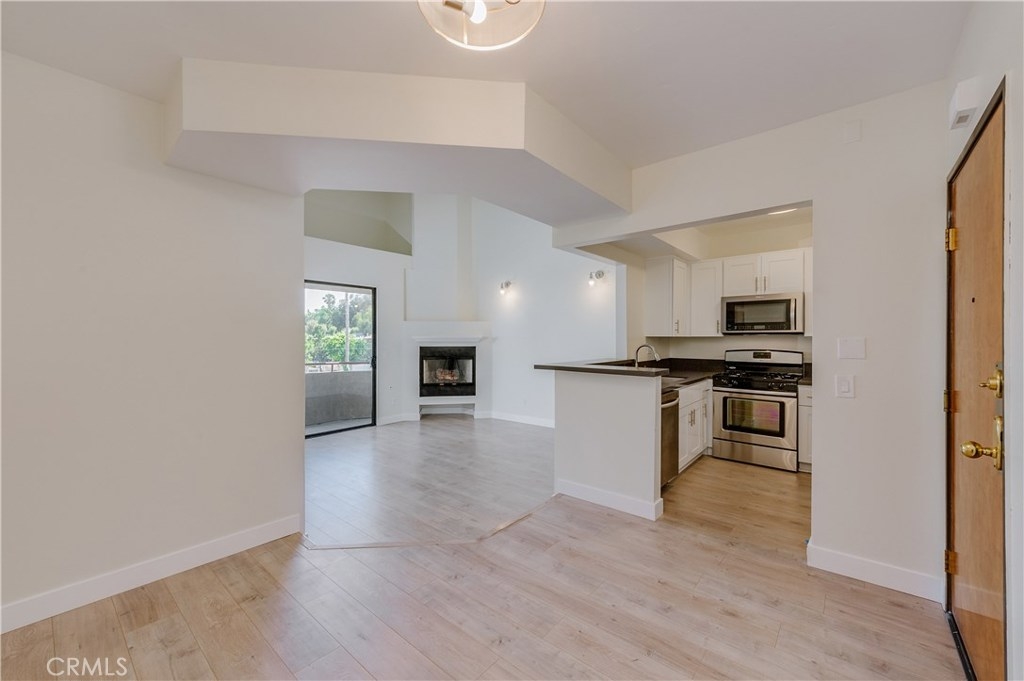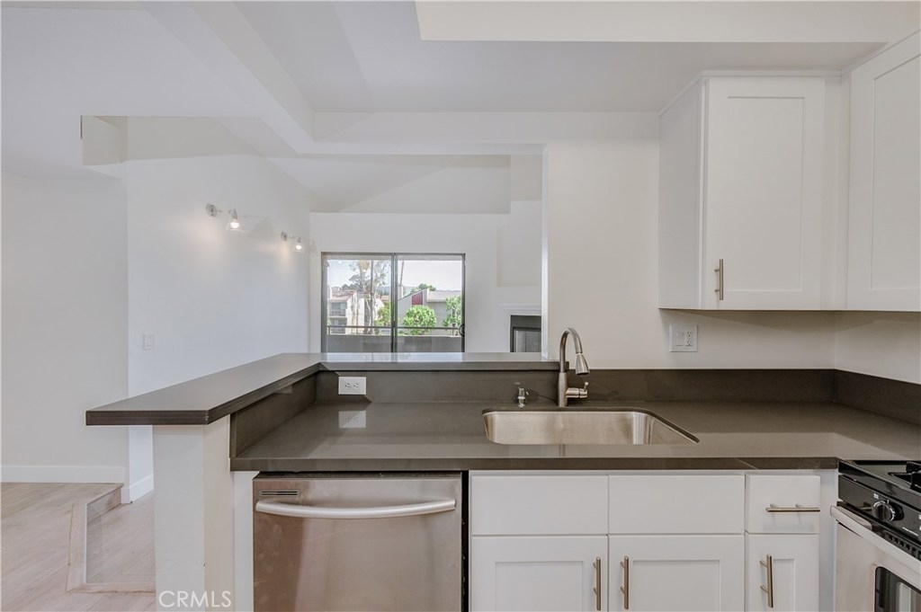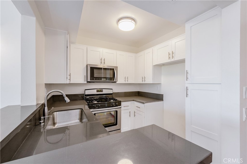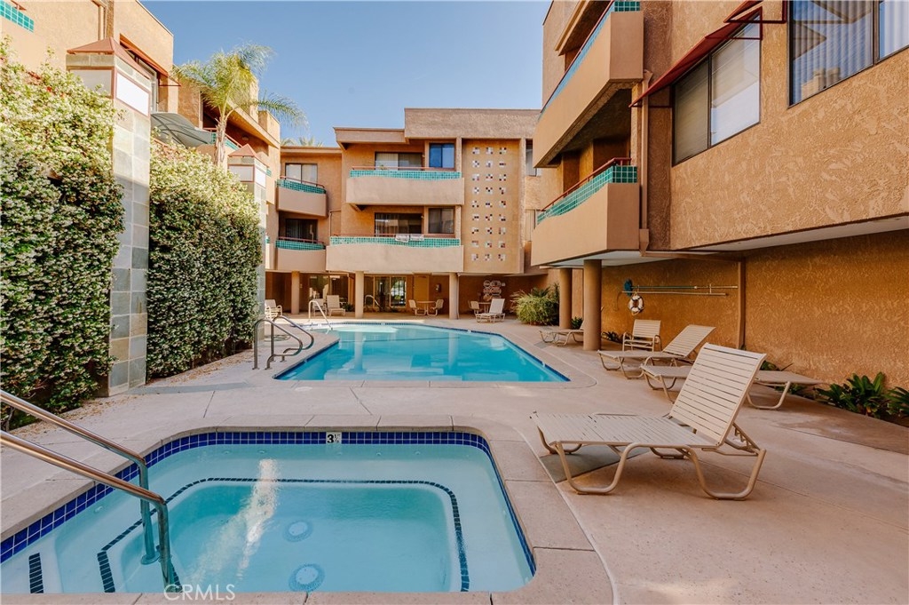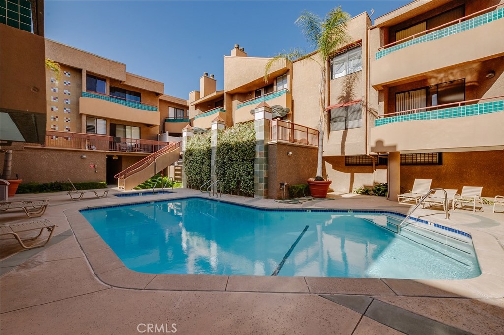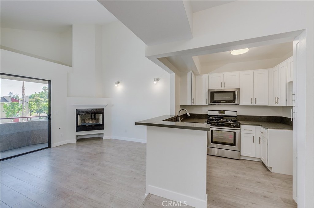 This Beautifully Remodeled 2 bedroom 2 full bath home has been highly upgraded with a New Kitchen featuring custom wood shaker cabinetry, Quartz countertops, Stainless Steel appliances, and designer light fixtures. The kitchen has a breakfast bar and is open to the living space and to a separate area perfect for dining. Tons of light in the unit and a cozy fireplace, high ceilings, sleek flooring throughout, and new interior paint! Spacious bedrooms and a large balcony! You will love the finishes in the bathrooms including new customized cabinetry, tiled shower, Quartz countertops, and industrial lighting. Inside laundry with washer and dryer included! Two parking spaces in the subterranean parking garage with elevator access to the unit. Secured building, sparkling pool, and plenty of room to enjoy the outside patio or pool area! Close to the elevator for quick access. Well funded HOA in good standing. Don't miss this condo it will check all the boxes! Conveniently located, don't miss out!