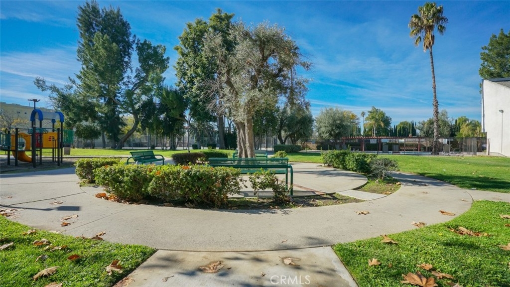 FHA APPROVED Welcome Home to this beautiful top-floor, corner-unit condo in the gated Park Reseda complex. This home offers 2 bedrooms and 1.5 bathrooms, a spacious primary suite, and a walk-in closet. Great location within the complex; away from Reseda and only one common wall. The elevator is very convenient, with easy access to the laundry room and underground parking (2 tandem spaces). Nice size patio off the dining area which offers natural light and views of the north valley mountains. The Complex offers a park, kid play area, tennis court, basketball court, clubhouse, Trash, and water included. Low HOA of $380. This is perfect for first-time buyers! Why rent, when you can buy?
