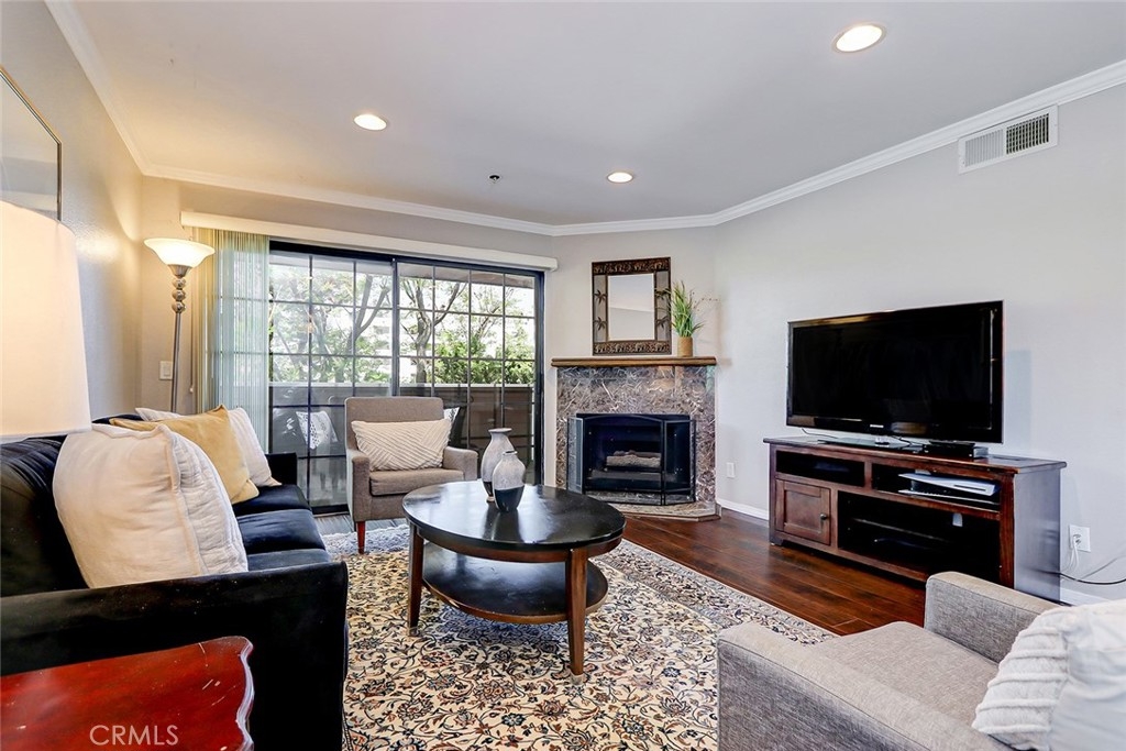 Welcome home to this darling 2 bed 2 bath condo. This end unit on the second floor features wood/laminate floors throughout, smooth ceilings with recessed lighting, crown molding and a lovely gas/wood burning fireplace for cozy evenings. The living room leads you out to a private covered. The all white kitchen is bright and clean. There is a full capacity stackable washer/dryer its own closet in the kitchen. The large primary bedroom enjoys its own en-suite bathroom and has two good sized closets. The second bedroom also features a bathroom. The windows in this unit have been upgraded with energy efficient dual paned windows. This unit comes with 2 side by side parking spaces in an underground security gated garage. Guest parking is easy. The property is located close to top shopping the Village, CSUN, Pierce College as well as nearby restaurants and entertainment! This charming condo complex is located just steps away from Reseda Park, one of the nicest parks in Los Angeles!