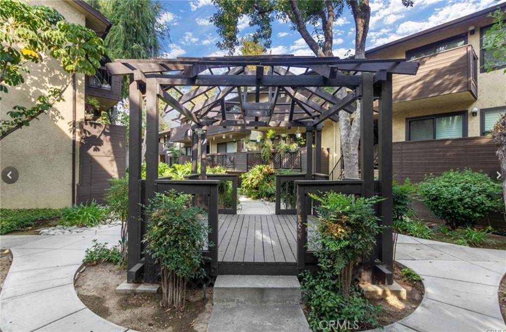 Beautiful condo in a very well maintained, and landscaped, complex in Reseda. Light and bright, this end unit is in a good location. The condo features custom paint, cabinets, doors, wood floors, remodeled bathrooms and much more, including a two car detached garage. The complex offers a pool, Jacuzzi and tennis court. This community is FHA & VA approved!