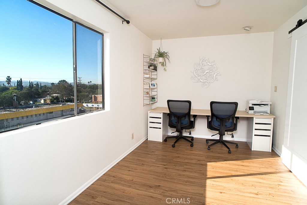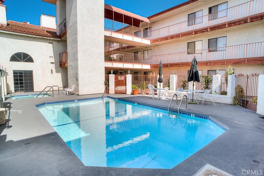 Rare opportunity to move in this sought-after Spanish Villa style complex. True penthouse living, this stunning 3 bedroom 2 bath 1353 sqft condo boasts 180 degree views of the city and surrounding mountains. Light, bright and airy unit featuring vaulted ceilings, spacious bedrooms. 3rd bedroom currently being used as a private home office, laundry area in unit, newly painted, newer quality laminated wood flooring, and large private balcony making it perfect for entertaining. The community is all security gated, well maintained including twice weekly maintenance & gardening, pool service and pest control. It features a sparkling pool and spa, sauna, recreation room/event space. Bonus personal storage closets in the gated garage along with 2 parking spaces and additional guest parking. This home is ready to move in -Hurry it wont last long.