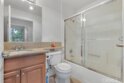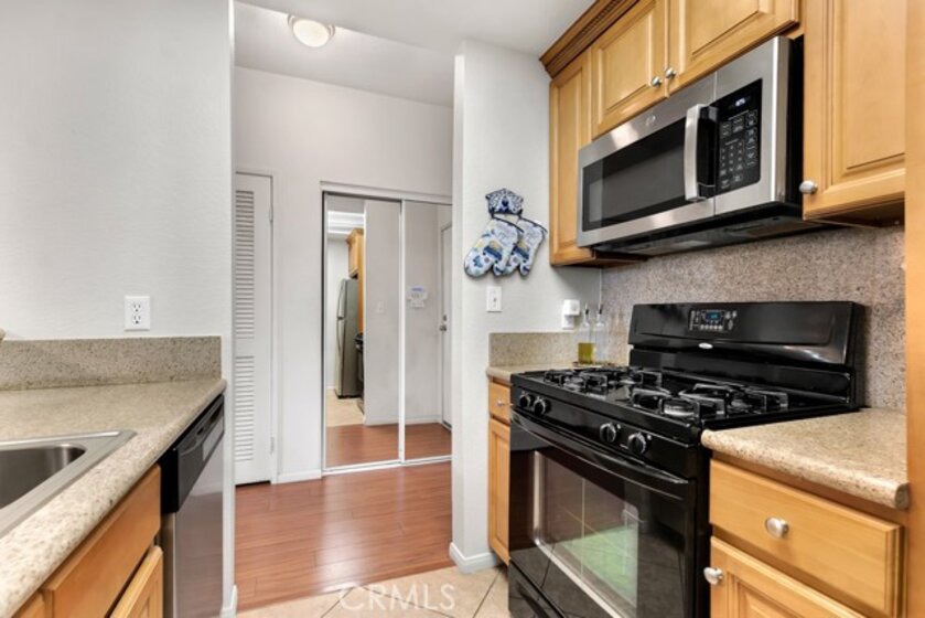 FHA approved condo. In unit Laundry and A/C. Welcome to this beautifully updated 2-bedroom, 2-bathroom condo in gated community. Ideally situated in a prime location within the complex, this home offers easy access from the parking garage to the elevator and directly to the unit. The inviting living area features a cozy fireplace and opens to a private balcony. The kitchen and both bathrooms have been tastefully upgraded with granite countertops creating a cohesive feel through the home. The primary bedroom boasts a spacious closet, linen storage, and a private full bathroom. The second bedroom also offers balcony access, providing indoor-outdoor flow. There is a 2nd full bathroom off the hall. Additional highlights include in-unit LAUNDRY, central A/C, no downstairs neighbors and 2 (tandem) parking spots plus private gated storage area. Residents enjoy a full suite of amenities including a pool, spa, sauna, recreation room, gym, EV charging stations, and guest parking. The community is centrally located near public transportation, shopping, dining, and more, making it a convenient place to call home.