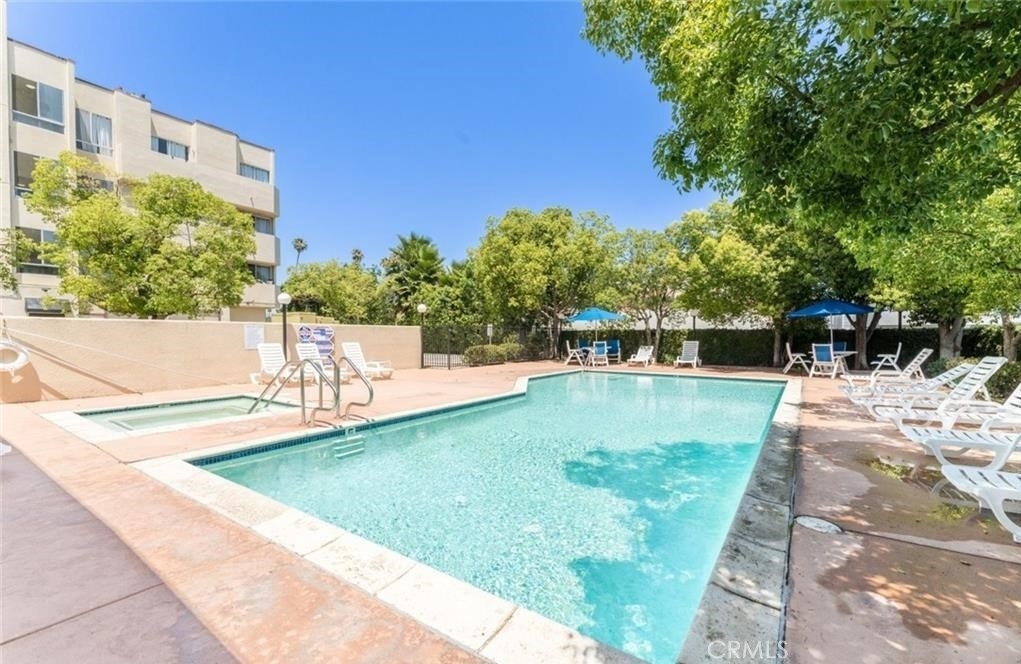 Newly Listed & Priced to Sell Fast! Step into this sunlit, inviting 2-bedroom, 2-bathroom sanctuary, ready to welcome you home. Boasting a spacious 1,021-SqFt layout with airy 9-ft ceilings, sleek laminate floors, and modern recessed lighting. The luminous living room, accentuated by a cozy corner fireplace, seamlessly flows to a private balcony - perfect for morning coffees. Whip up delightful dishes in the snug kitchen, complemented by a dining space and a breakfast bar, ideal for both intimate dinners and lively gatherings. The primary bedroom is a retreat, featuring an ensuite bath and a generous walk-in closet. Benefit from recent upgrades like new plumbing and a year-old HVAC system. Secure 2 private parking spots and an exclusive storage unit. Reside in a well-kept building, enriched with amenities like a vast pool, contemporary gym, sauna, and a communal lounge. Noteworthy enhancements include solar panels, a fresh roof, and a double-gated, remote-controlled garage. Located in a prime spot, it's a stone's throw from schools, shopping, the Winnetka DMV, Starbucks, and more. A gem in an FHA-approved building!