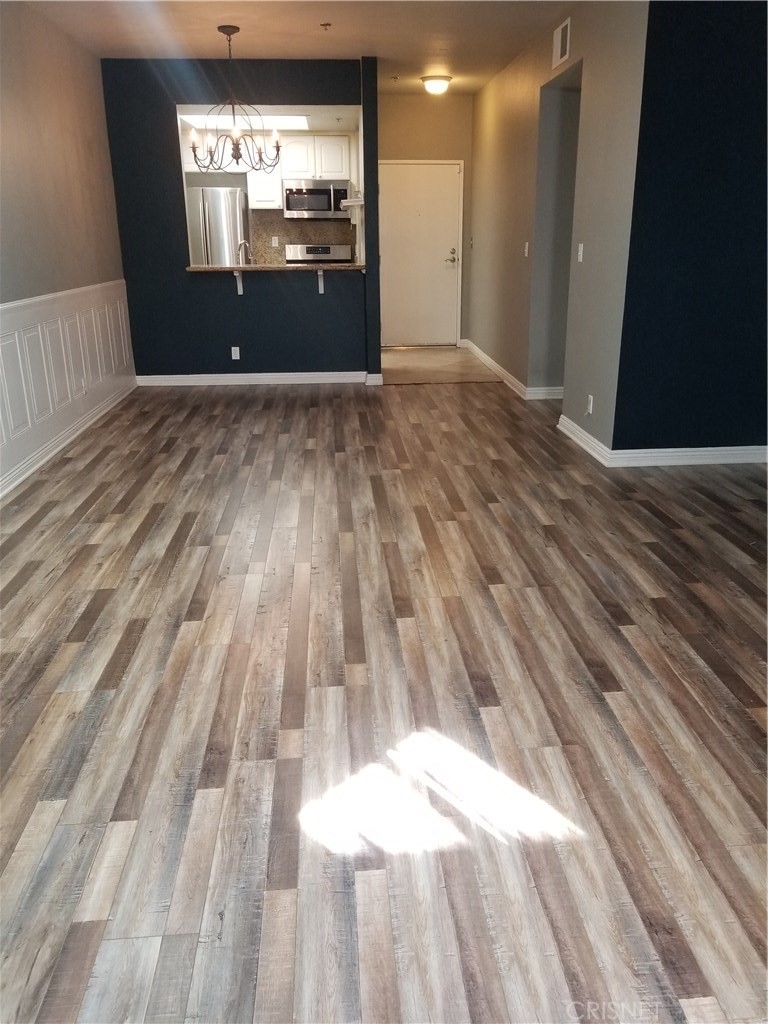 Beautiful south facing Sherman Court condominium with 2 bedrooms and 2 baths. The living room has a fireplace and recessed lighting And Hard wooden floors, the dining area has a ceiling fan and the kitchen has granite top with breakfast bar and Samsung stove and refrigerator. Master suite with bath and mirrored wardrobe. First floor Balcony. Security complex with pool, spa, sauna, rec room and gym. Hoa fee includes earthquake insurance and water. Two tandem parking spots with a storage locker in the garage. Hurry this won't last!