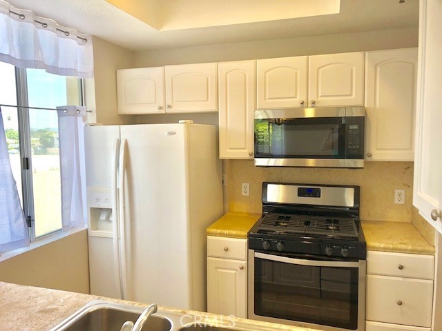 Stunning one level condo located on the 2nd floor in desirable Sherman Court Complex. End unit with rare wrap around balcony and great views! Light, bright and airy this unit boasts new paint, new laminate flooring and updated baths with tile floors. Washer and dryer in unit. Updated kitchen with breakfast bar opens to living room with fireplace and dual sliders leading to the balconies. Master bedroom has private bath and walk in closet. Storage closet in garage with 2 parking spaces/tandem style. Security building with pool, spa, sauna, gym and guest parking. Sharp and move in ready!