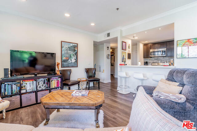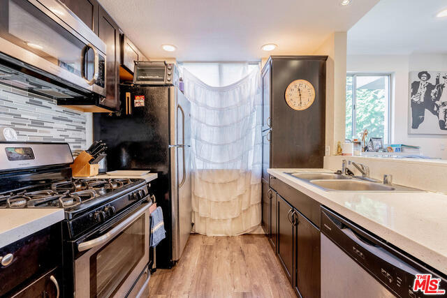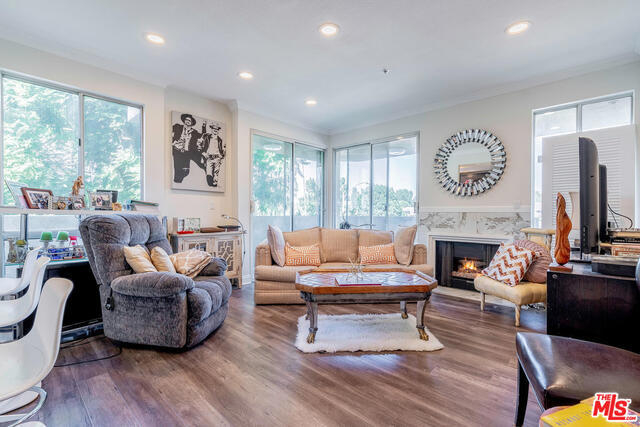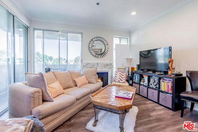 Back on the market - Buyer couldn't close! Views Views Views! Corner unit with extra balcony + side x side parking. Light bright and beautiful, this large two bedroom two bath condo is move in ready! Fully upgraded from top to bottom with newer kitchen cabinets, quartz countertops, lots of storage space, ceramic floors, and recessed lighting. Great layout features a large living room with laminate wood flooring and cozy fireplace, 3 balconies, spacious master bedroom, and updated bathrooms with newer vanity and tile floors. Washer & dryer in unit. Best location with tree top & mountain views. Gated community with swimming pool and spa, gym, recreation room, and sauna. Subterranean side by side assigned parking and extra storage, Close to Warner Center, The Village, Topanga Plaza, parks, schools and shopping! FHA approved.