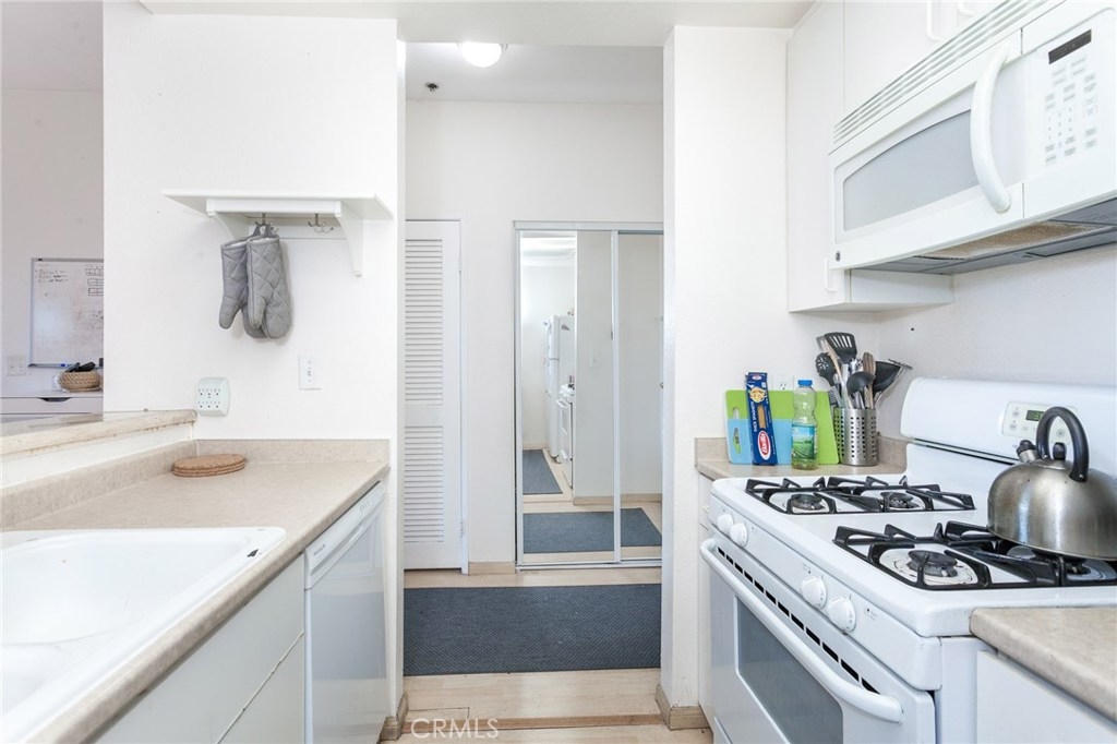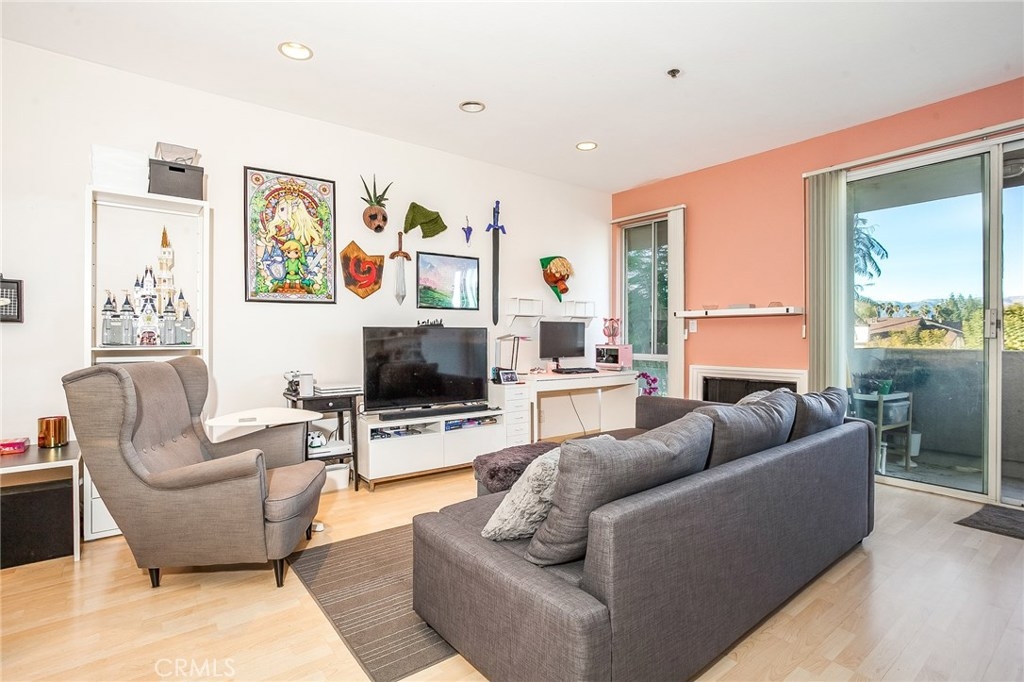 This light & bright 2 bedroom + 2 bath condo in a secured building has a lot to offer. This unit has gas fireplace and washer/dryer in the unit. The building offers a pool/spa along with a recreation room, private gym, storage cage & 2 tandem parking spaces in the covered & secured garage and security guard. Close to shopping, restaurants, freeways and public transportation. FHA approved!