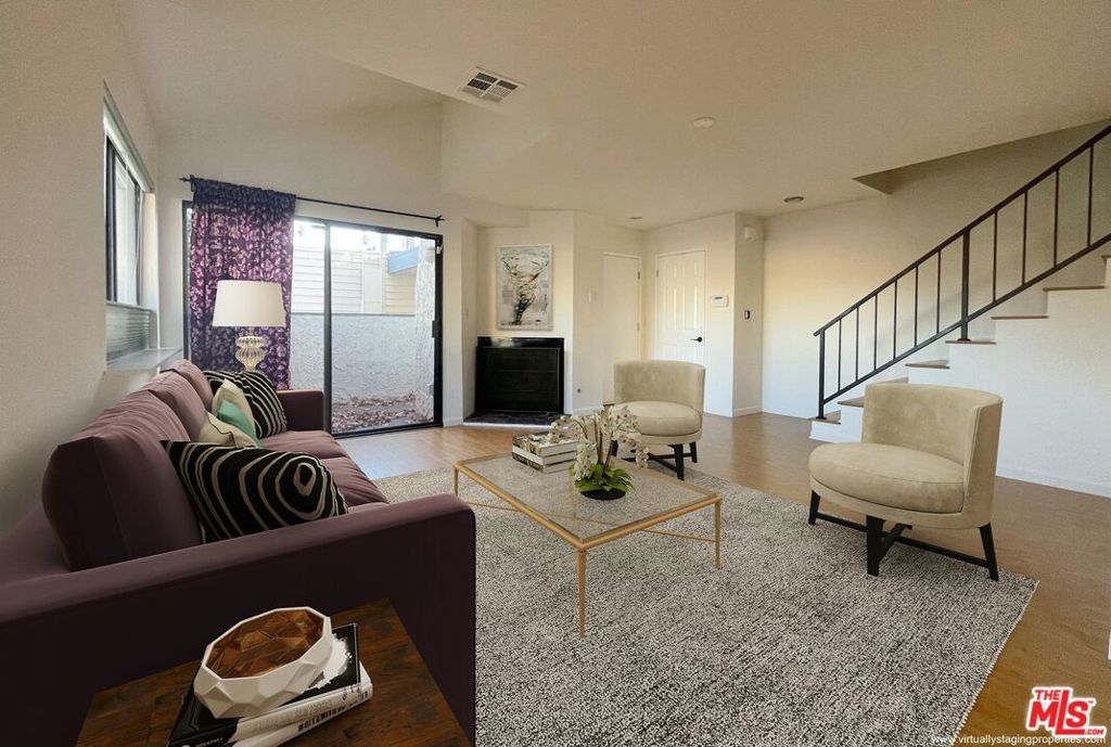 Immaculate two story townhome with attached garage at Sherwood Townhomes. Very desirable end unit in center-back row of homes next to guest parking. This community has a pool/spa within beautifully landscaped grounds and the HOA includes internet/cable TV and association EQ insurance. The home features wood-look laminate floors, smooth ceilings, private patio with BBQ, guest 1/2 bath, and gas burning fireplace. The kitchen is exceptional with higher-end cabinet features, under counter lighting, deep farm sink, and stainless steel built-in appliances. The upstairs bedrooms are both suites with walk-in closets and updated baths. There's terrific natural sunlight, washer/dryer hookups in garage, unit alarm system, and new paint throughout.