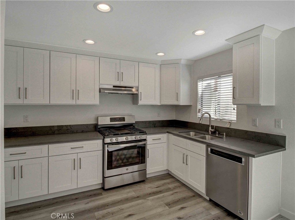 Sought after Sherwood Townhomes Complex. Much new remodeling and upgrading! Gorgeous new kitchen with lovely white cabinets & sleek gray counter tops Brand new stainless appliances and recessed LED lighting. Most windows have just been replaced with new dual pane windows. Designer wood like engineered vinyl plank flooring! New paint throughout and upstairs has new plush grey carpet. New lighting fixtures and hardware. Living room with fireplace opens to family room/dining area. Slider opens to totally private patio with room for a garden. Patio has direct access to private 2 car garage that has washer/dryer hook-ups. Each of the bedrooms has a private bathroom. Master bedroom is extra large with vaulted ceilings, a walk-in closet and a wall of closets. Beautiful well maintained complex has a resort like pool & spa area.