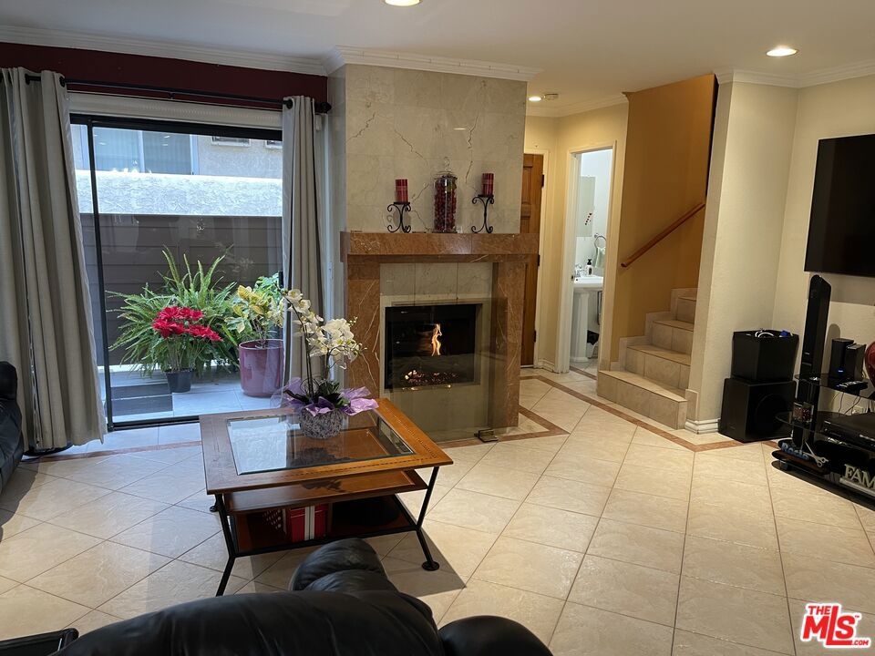 Probate Subject. Two Bedroom, 2 1/2 bath Townhouse style with both bedrooms upstairs including a Primary Suite and a loft/den/office space. Private two car garage with a good sized bonus room that could be made into a bedroom or maybe even a gym, Pilates studio or perhaps an at home office away from the hustle and bustle of the family. From the front door you enter the light and bright Living Room featuring a fireplace and a sliding door leading into your own private patio. Lots of space for a barbecue and there you have the California lifestyle that we all love, enjoying friends, family and sunshine! There is crown molding downstairs, recessed lighting and smooth ceilings. Flooring is all tile and so easy to keep clean! Kitchen is nice and bright with granite countertops and a pocket door leading to the dining area. Upstairs is the Primary Bedroom which is super spacious, with a walk in closet and en-suite full bathroom with double vanity. How convenient to have a grade school right across the street for the little ones! There is a swimmers pool and spa that is surrounded by lovely foliage. Quiet street,