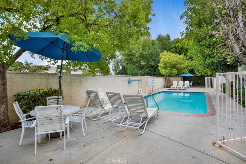 Poised within the lovely Southpointe Villas of sought-after Reseda, make new memories in this beautiful 3-bedroom, 2-bathroom condo complete with a private garage! Ascend the first-floor walkup and be greeted with a bright and vibrant 1,189-sqft floorplan featuring pristine laminate flooring throughout and plenty of built-in storage space. Entertaining is easy in this splendorous living room as a raised hearth fireplace creates a cozy ambiance to relax in while the private balcony makes for a perfect outdoor seating addition with views of the courtyard below. Stone tile floors line this user-friendly kitchen equipped with new appliances, including the free-stranding stove and refrigerator, neat cabinetry, and sleek tile countertops, and provides a charming dining nook to savor each delicious meal. All bedrooms include generous closet storage space and center ceiling fans while the airy primary bedroom enjoys the exclusive benefit of a walk-in closet plus a private en-suite split bathroom with a new shower. Residents of Southpointe are welcome to indulge in the glittering waters of the refresh community pool and restorative spa, perfect weekends at home. Located on a corner lot, this home is just minutes from Reseda High, Pierce College, Westfield Topanga & The Village, the Warner Center, local markets, restaurants, freeways, and north of the bustling Ventura Blvd!