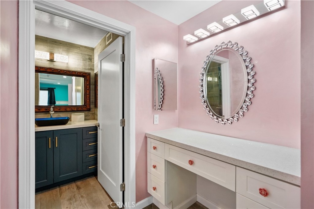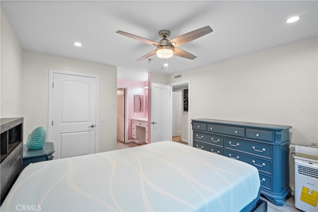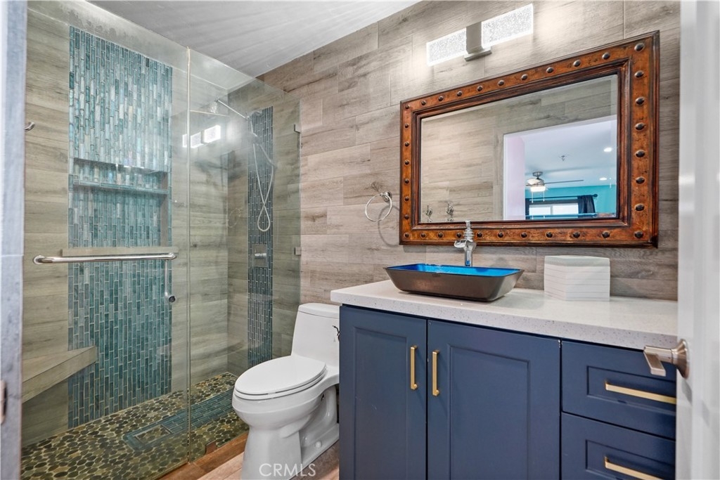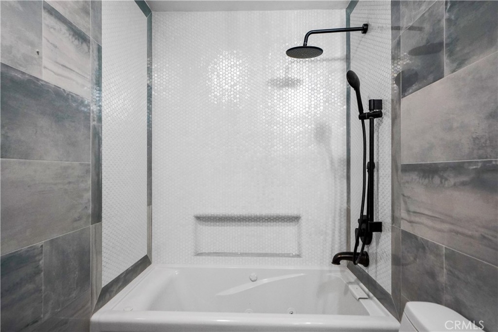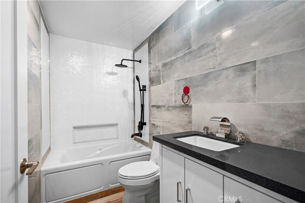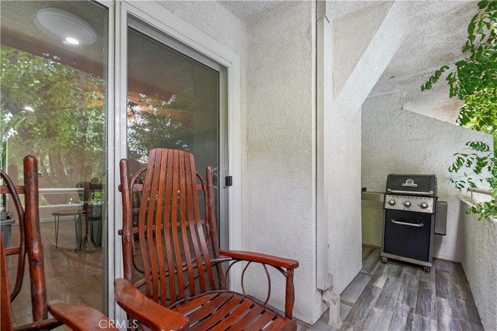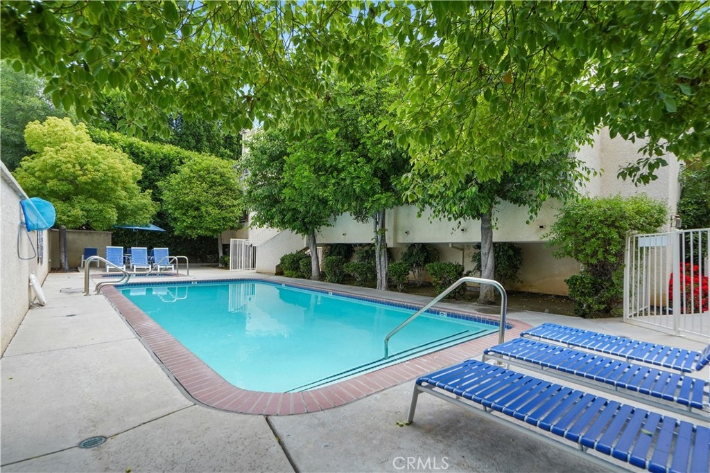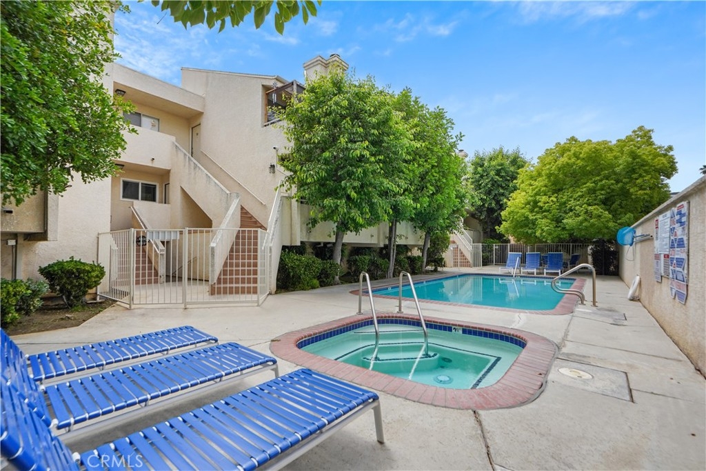 Remodeled lower-level condo with 2-bedrooms, 2-bathrooms. This home offers tile flooring with custom border throughout. Spacious dining and living room combo open & bright with custom mantel for the fireplace. Glass sliding door leads out to comfortable step out balcony with shade. Kitchen has an abundance of cabinet space, quartz counter tops, and sub tile backsplash. Wall pantry/storage with slide out shelves. Master bedroom suite is ample with it’s own custom walk-in closet, large vanity, and private remodeled walk-in shower with river like stone flooring, custom designed tile throughout. 2nd bedroom has been custom shelving in closet and barn doors, wall shelve converts to table, light with retractable fan & Bluetooth. 2 car tandem garage with lots of shelves for storage, laundry hook-ups with more shelves & new light. Community pool and spa with lounge chairs. Newer windows and glass sliding door and tankless water heater. Home is minutes from Westfield Topanga & The Village, the Warner Center, local markets, restaurants, Pierce College & freeways.