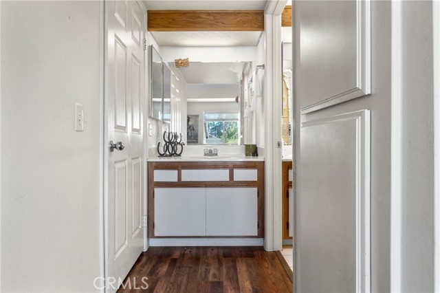 Welcome home to Southpointe Villas gated community! This lovely 2-bedroom, 2-bathroom corner end second floor condo offers an open and bright living room with vaulted ceilings, fireplace and balcony access. Wood laminate floor throughout the unit, valuated ceilings, ample storage space and more. Kitchen with tile countertops. Master bedroom suite has a private bathroom, large vanity, and walk-in closet. 1 car shared garage with your personal washer and dryer laundry hookup located in rear southwest side with quick access up to your cozy condo. Lounge and relax in the sparkling community pool and spa just walking distance from your front door. This home is just minutes from Reseda High, Pierce College, Westfield Topanga & The Village, the Warner Center, local markets, restaurants, freeways, and north of the bustling Ventura Blvd! This home is perfect for a family with many amenities to offer.