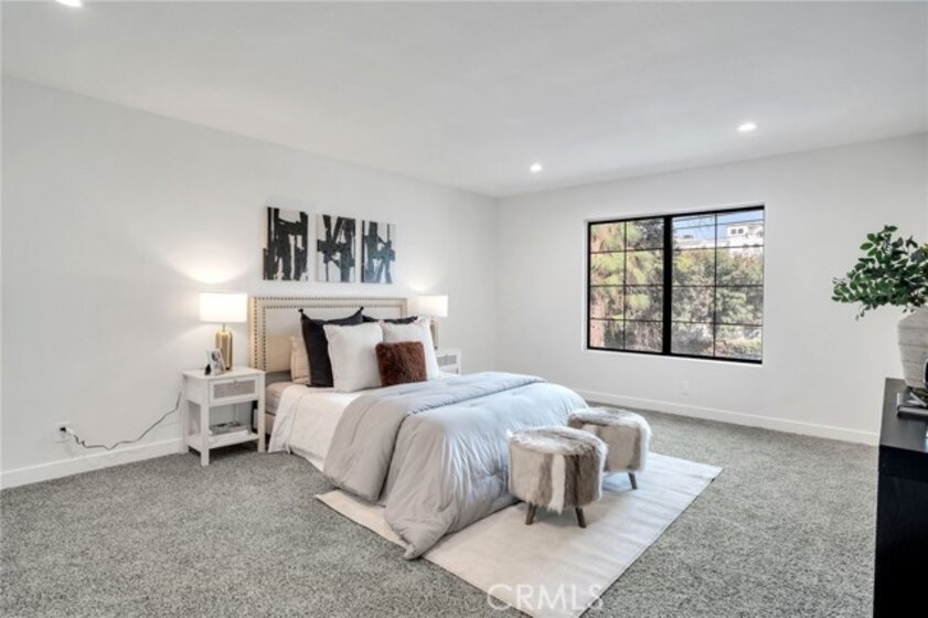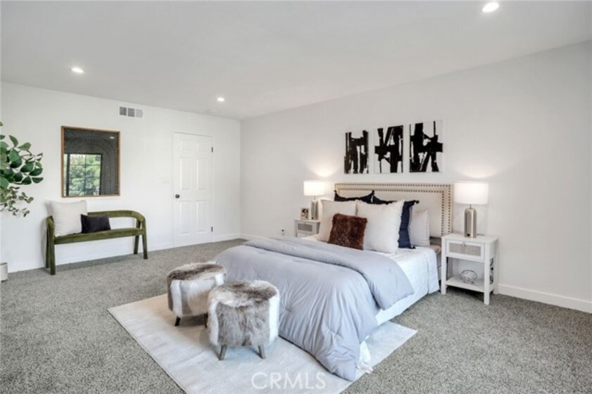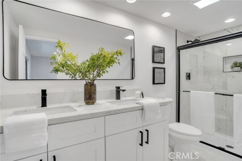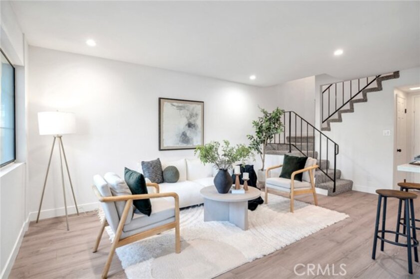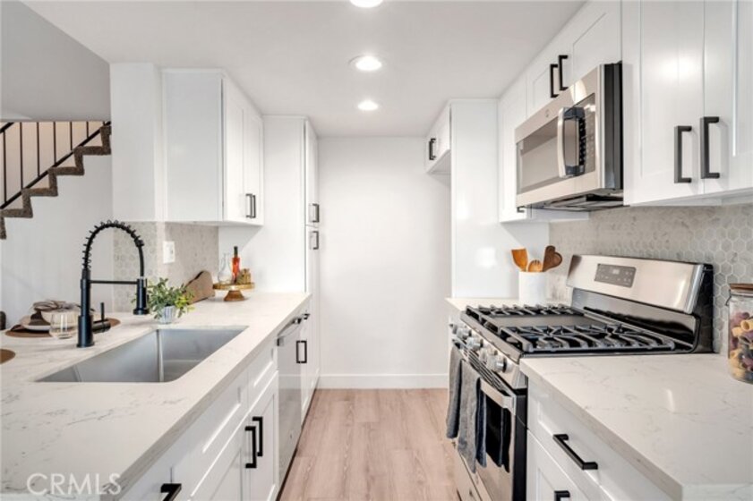 Welcome to this beautifully remodeled two-story, 2 bedroom, 2.5 bathroom townhome located in a small-scale, gated complex in the heart of Reseda! Step inside to discover a pristine interior boasting freshly painted walls throughout, NEW flooring, and NEW light fixtures. The property also benefits from a NEW air conditioning and heating system, ensuring year-round comfort. The stunning NEW kitchen features elegant white cabinets, NEW stainless-steel appliances, designer tile backsplash, sleek quartz countertops with a convenient breakfast bar that seamlessly connects to the living room, perfect for modern living and entertaining. Retreat to the primary suite complete with a private bath and walk-in closet. All bathrooms have been fully renovated with vanity cabinets, quartz countertops, tile shower, tile flooring and light fixtures. NEW recessed lighting and abundant natural light create a warm ambiance. The sliding glass door leads you to a private patio with NEW wood fencing, ideal for al fresco dining or weekend barbecues. The attached two-car garage with direct access and washer and dryer hookups adds to the convenience. The community features a sparkling pool and spa and is centrally located within walking distance to a variety of shopping and restaurants, making it the ideal place to call home! Low HOA