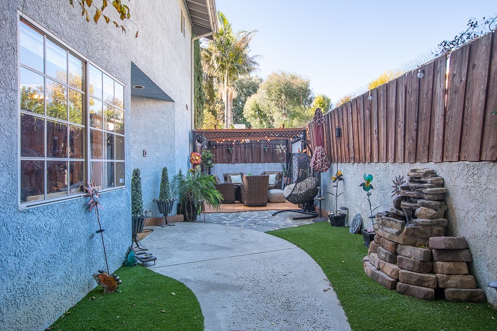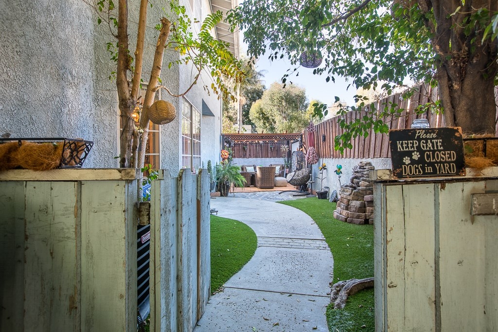 Beautiful Townhome located in a lovely complex. Tucked away with a very private feel is this hard to find 3 bedroom 2 1/2 Bath that is warm & inviting. Enter the home to find wood laminate flooring throughout the lower level & crisp white walls. The Kitchen is a chef's delight with white shaker-style cabinets, Spanish tile, stainless steel appliances & gas range. This charming kitchen also has space for dining, lighting fixtures and a large window where natural light flows in. Right off the kitchen is access to your large two car garage with room for all your toys, a washer & dryer and plenty of additional room. Step into your spacious living room with a fireplace and powder room off to the right to round out the lower level. Upstairs are 3 spacious bedrooms. The master bedroom has vaulted ceilings, a walk-in closet, dual sinks, shower & soaking tub. The other two bedrooms have a Jack & Jill bathroom, large closets & soaring ceilings. The exterior of your home is sure to please, with additional storage space - a beautiful jacuzzi, outdoor furniture with built in pergola and water features!