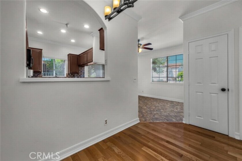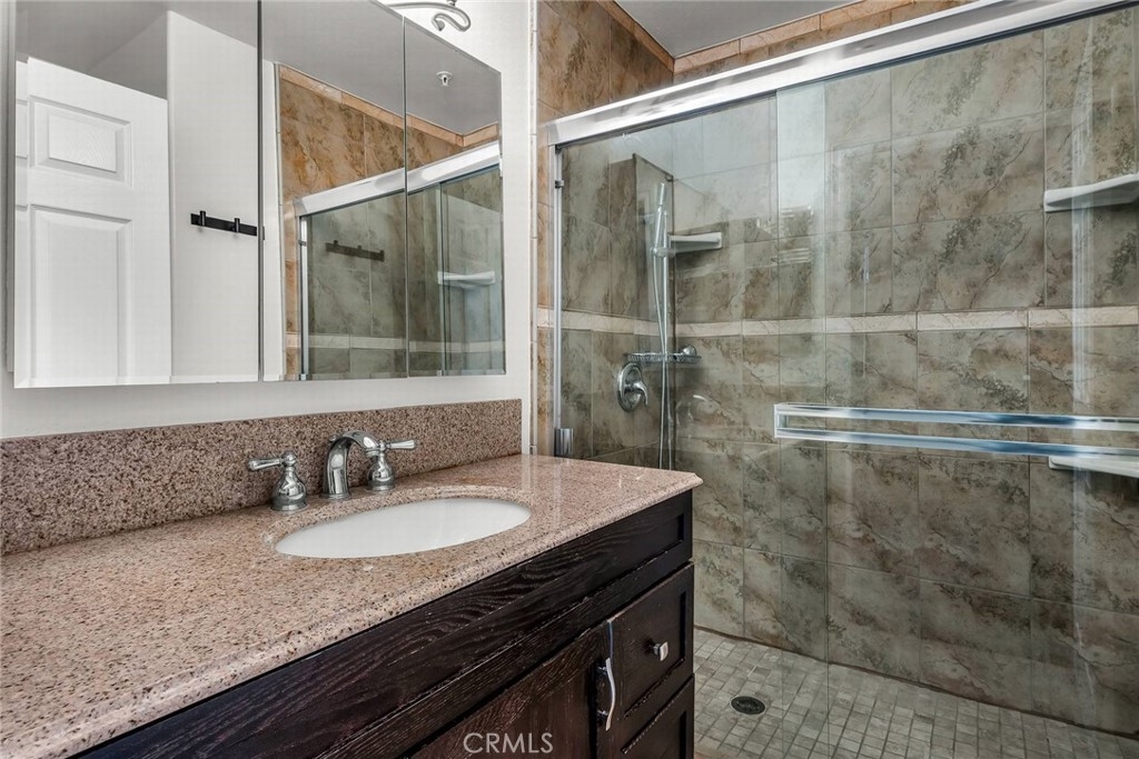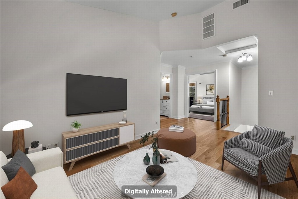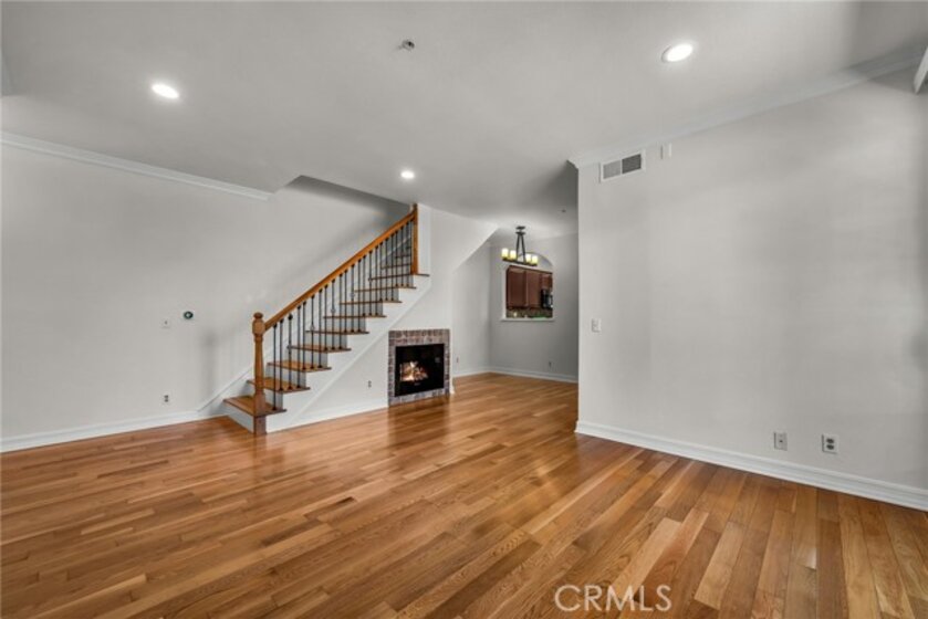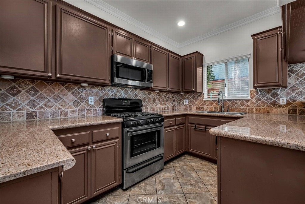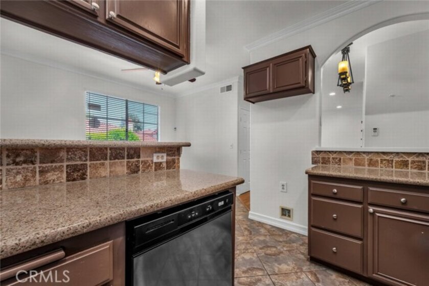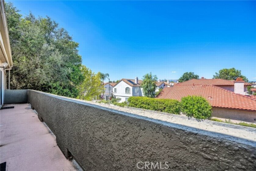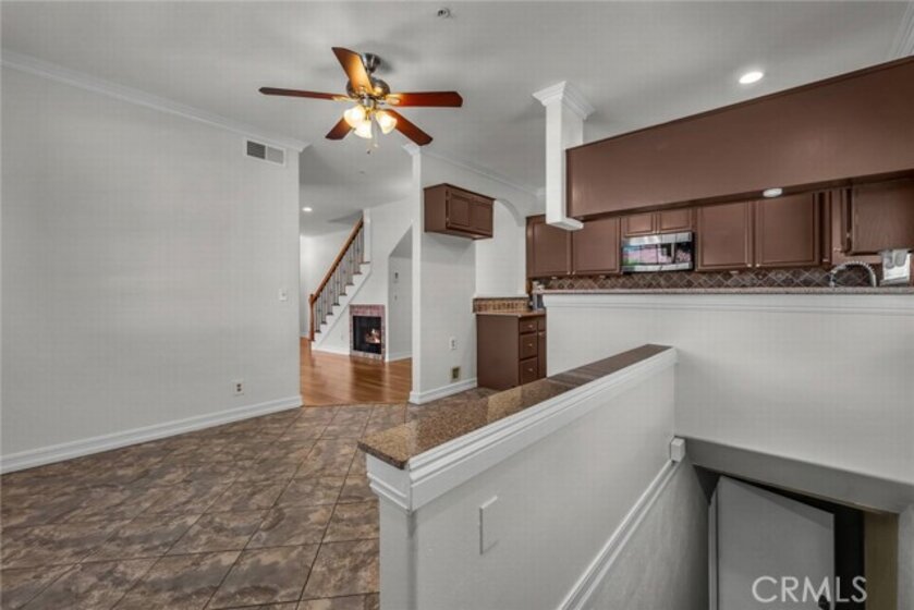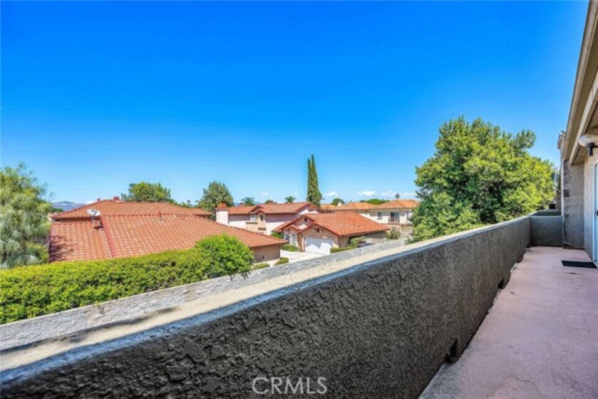 Stop the search—this is the townhome you’ve been waiting for. Beautifully upgraded tri-level residence, quietly tucked at the back of the complex, blending comfort, style, and everyday convenience. Designed for modern living and effortless entertaining, this light-filled home features soaring ceilings, abundant natural light, and an open, airy layout throughout. The main level welcomes you with a spacious living room highlighted by high ceilings, crown molding, recessed lighting, wood-style flooring, and a cozy fireplace. A sliding glass door opens to a large private balcony—perfect for morning coffee or evening relaxation. A convenient guest bathroom completes this level. The updated kitchen showcases warm Carmel-toned cabinetry, granite countertops, stone backsplash, stainless steel appliances, and decorative tile flooring, all opening seamlessly to a generous breakfast area ideal for casual dining. Upstairs, a decorative staircase leads to a versatile bonus area—perfect as a family room, home office, or media space. The expansive primary suite offers a peaceful retreat with a walk-in closet and an updated ensuite bathroom featuring a granite-top vanity and beautifully tiled step-in shower. The spacious secondary bedroom includes a mirrored closet and access to an updated hall bathroom with granite-top vanity and tub/shower combo. Both bedrooms enjoy direct access to a large, tranquil balcony, enhancing the indoor-outdoor flow. Additional highlights include a private two-car garage with washer and dryer, ample storage, and a well-maintained community featuring a pool, spa, and recreation room. Ideally located near shopping, dining, and with easy access to the 101 and 405 freeways, this home offers the perfect balance of comfort, convenience, and lifestyle.
