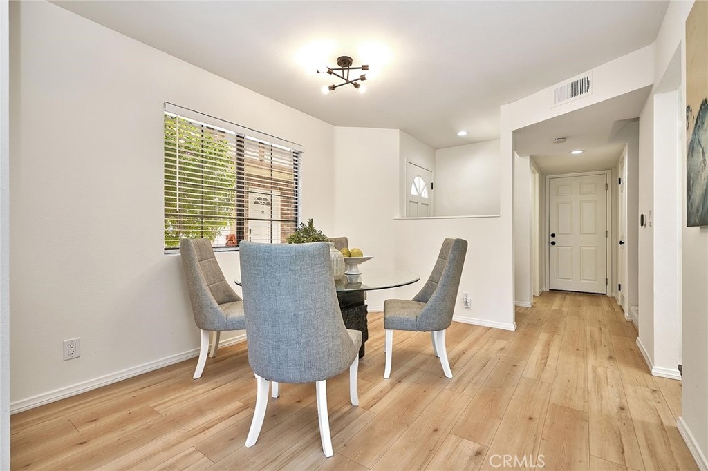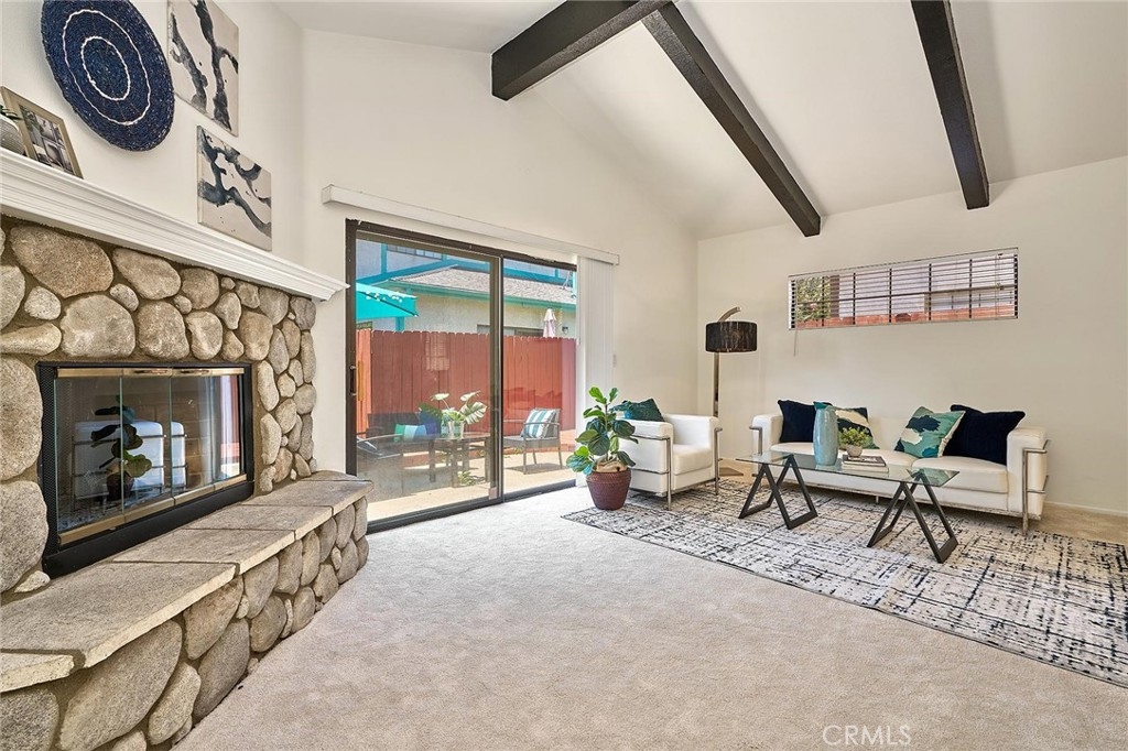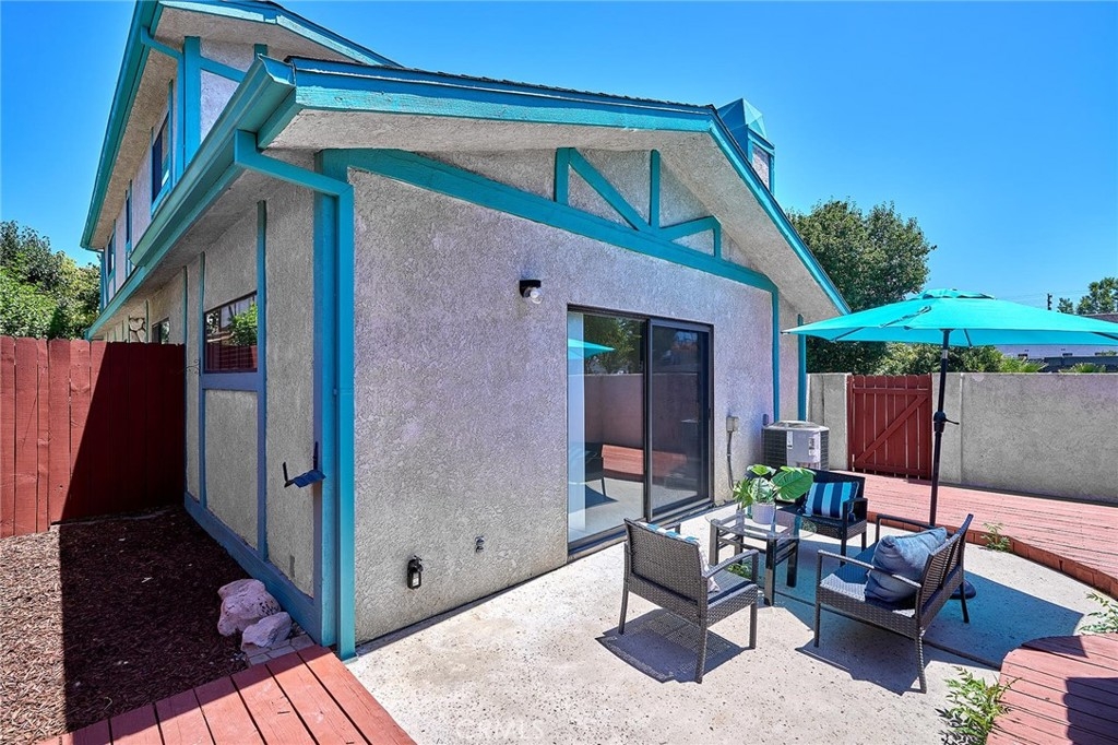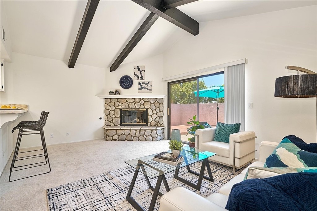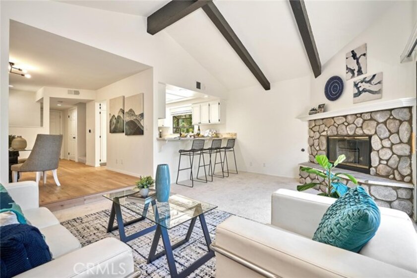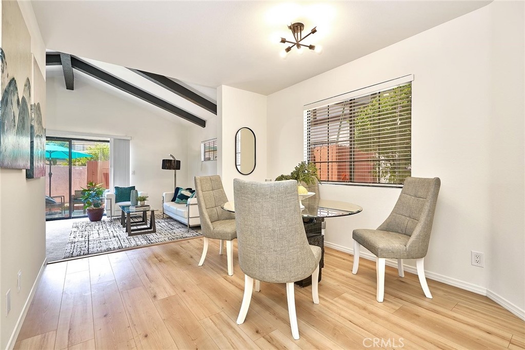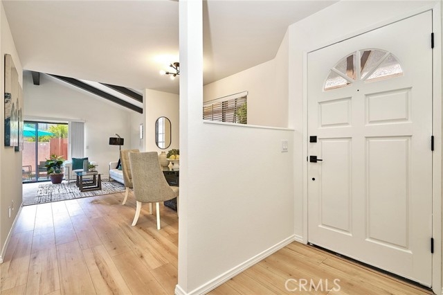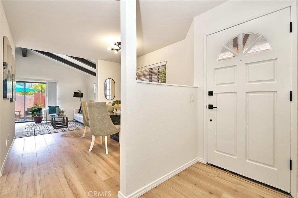 Discover this turnkey, beautifully upgraded END UNIT in complex! 2-bedroom, 2.5-bathroom detached townhome nestled in a highly desirable, well-maintained, and gated community. Recently updated throughout, this townhome welcomes you with vaulted ceilings and charming exposed beams in the living room. The upgraded kitchen features luxurious countertops with backsplash, and brand-new stainless-steel appliances, all perfectly complemented by stunning new laminate flooring that flows seamlessly throughout kitchen and dining area. The bathrooms have been tastefully updated with new fixtures and the entire home is offers fresh paint, new light fixtures, and lots of charm. No Mello Roos, and a prime location close to freeways, schools, shopping, and more, this turnkey townhome is a rare find.
