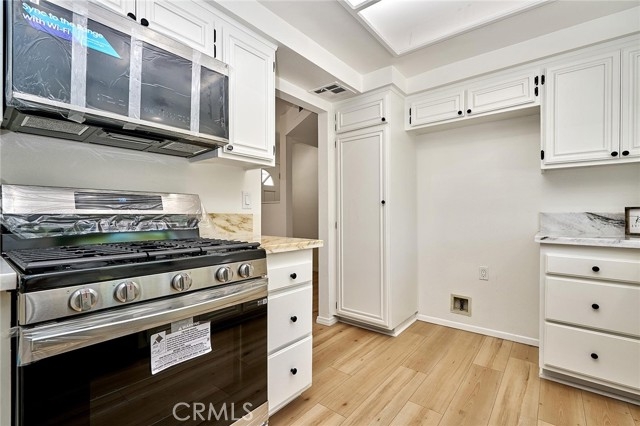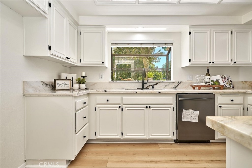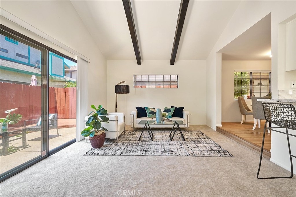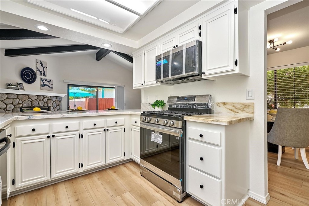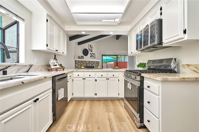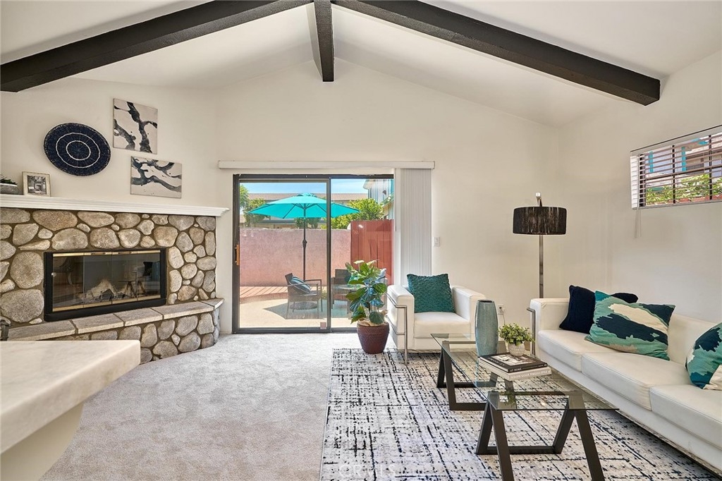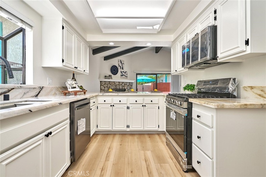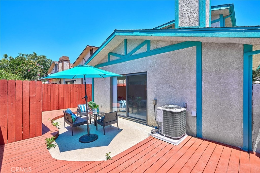 Discover this turnkey, beautifully upgraded END UNIT in complex! 2-bedroom, 2.5-bathroom detached townhome nestled in a highly desirable, well-maintained, and gated community. Recently updated throughout, this townhome welcomes you with vaulted ceilings and charming exposed beams in the living room. The upgraded kitchen features luxurious countertops with backsplash, and brand-new stainless-steel appliances, all perfectly complemented by stunning new laminate flooring that flows seamlessly throughout kitchen and dining area. The bathrooms have been tastefully updated with new fixtures and the entire home is offers fresh paint, new light fixtures, and lots of charm. No Mello Roos, and a prime location close to freeways, schools, shopping, and more, this turnkey townhome is a rare find.