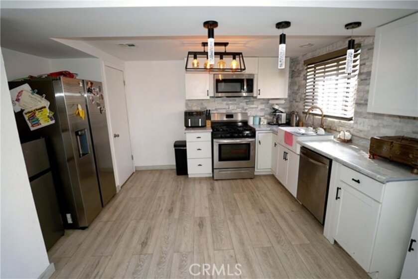 Welcome to this stylish townhouse located in a small, gated community in Reseda featuring a resort-style pool and spa. This well-maintained, controlled-access community offers privacy, convenience, and beautifully kept common areas. The unit features a private entry accessed via a short exterior staircase leading to an open and airy floor plan filled with natural light. The living, dining, and kitchen areas flow seamlessly, creating an ideal space for everyday living and entertaining. The updated kitchen showcases sleek white cabinetry, stainless steel appliances, pendant lighting, elegant porcelain countertops, and a complementary tile backsplash. Durable wood-style flooring runs throughout the main living areas, adding warmth and cohesion. A direct stairway from the kitchen leads down to the attached private garage, offering convenient access. The garage includes in-garage laundry and an electric vehicle charging outlet, ideal for Tesla or other EV owners, along with additional storage space. The living area features contemporary flooring, recessed lighting, a custom accent wall that adds character and style. and a striking floor-to-ceiling stone fireplace, creating a perfect focal point for relaxing or entertaining. Sliding doors open to a private patio, ideal for morning coffee or evening wine.. A staircase from the main living level leads to the second floor, where the bedrooms are located, providing excellent separation of living and private spaces. One of the upstairs bathrooms is an en-suite, located inside the primary bedroom and features a spa-inspired design with a pebble-stone walk-in shower, glass enclosure, and natural stone flooring. The second upstairs bathroom offers a clean, modern aesthetic with a full tub/shower combination accented by large-format marble-style tile and coordinating flooring facing the 2nd bedroom. Residents enjoy access to the community pool and jacuzzi—perfect for relaxing or entertaining during warm Southern California days. Conveniently located near shopping, dining, schools, and major commuter routes, this home presents an excellent opportunity for owner-occupants or investors seeking low-maintenance living in a central Valley location. Buyer to verify all information including HOA details, square footage, and school boundaries.