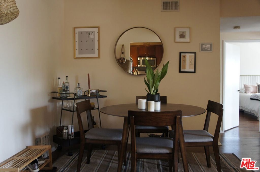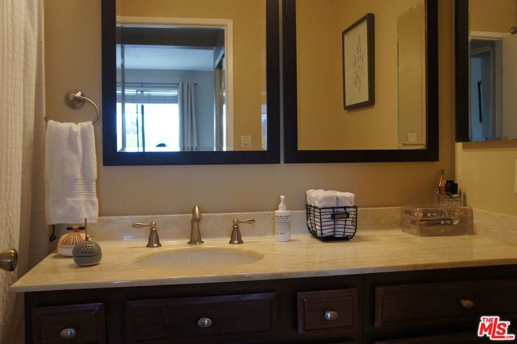 Bright and airy open concept condo in a well managed building. High vaulted ceiling in the living room, southern exposure for maximum sinlight. Spacious master suite and a good size guest bedroom, 2 full bathrooms, washer/dryer hookups. Hardwood floors throughout, updated kitchen counters, gas fireplace in the living room. New AC unit installed last year. Courtyard pool and spa, well stocked excersise room. Secure garage with 2 tandem parking spots and a storage locker. Excellent location! Easy access to the 101 freeway and all major roads.