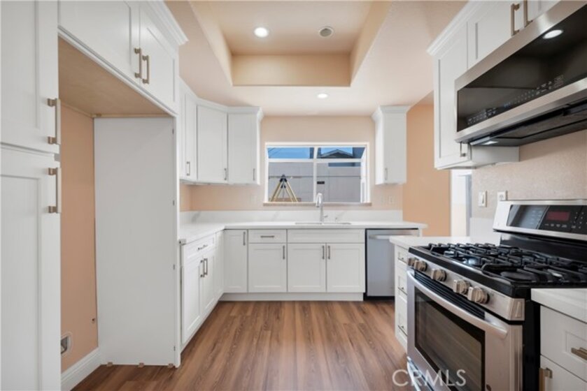 Price Improvement!! Welcome to this spacious and stylish 3 bedroom, 2.5 bathroom townhome offering 1,704 sq ft of living space in a private gated community of only 13 homes. This updated residence combines modern comfort, thoughtful upgrades, and an unbeatable location. Interior Highlights-Freshly painted throughout with brand-new laminate flooring downstairs, Updated kitchen with new cabinets, quartz countertops & ample storage, Recently remodeled bathrooms, Cozy living room with fireplace & high ceilings. Upstairs also has an airy feel with high ceilings, two of the bedrooms have walk-in closets. Exterior features Private backyard with approx. 500 sf of outdoor space-perfect for entertaining with new vinyl fencing, Covered patio + additional storage shed. Tesla/EV charger hook-up ready in 2-car garage, Washer/dryer included. Community Amenities-Sparkling pool with a lounge area, Gated security for peace of mind, Low HOA fees, Conveniently located near shopping, dining, schools, and freeway access — this home delivers both comfort and lifestyle. One of the best values for a spacious 3-bedroom in Reseda!