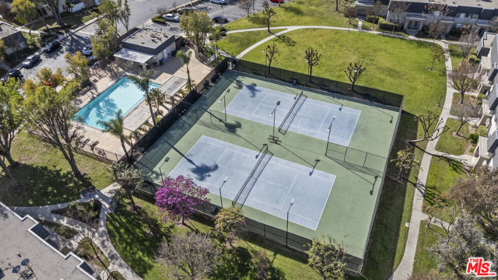 Welcome to this inviting two-bedroom townhome located in one of Reseda's most desirable communities. The main level features a comfortable living room and kitchen that open to a private patio, ideal for relaxing or entertaining, with direct access to the two-car garage. Features include recessed lighting, engineered hardwood flooring in the living area and on the stairs, and newly installed tile in the kitchen. The kitchen features stainless steel appliances and an abundance of natural light. Upstairs, the spacious primary bedroom features two generously sized closets. The community offers resort-style amenities, including a pool, tennis courts, expansive greenbelts, and convenient access to the LA River bike path. Ideally located near Randal Simmons Park, SOCES Educational Center, Los Angeles Pierce College, West Valley Occupational Center, with a library nearby and close proximity to public transportation, shopping, dining, and Tarzana medical facilities.