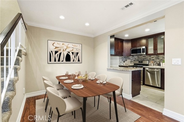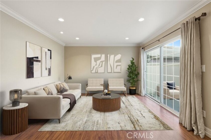 Welcome to this beautifully remodeled 4-bed, 2-bath townhouse in the highly desirable Briarcliffe community in Reseda. Thoughtfully updated, this home showcases a custom kitchen featuring sleek stainless-steel appliances, ample cabinetry, and designer finishes, all overlooking the dining room. The spacious, light-filled living room is enhanced by recessed lighting, elegant crown molding, and opens through sliding glass doors to a generous private patio ideal for outdoor dining and entertaining. The home offers one versatile bedroom downstairs, ideal for a home office, den, or playroom, while three generously sized bedrooms await upstairs, including a large primary suite complete with mirrored closet doors and custom shelving. Both bathrooms have been fully upgraded with modern fixtures and finishes. Additional highlights include laminate flooring, recessed lighting and crown molding that elevate the space. No expense was spared in the remodel, resulting in a move-in-ready home with quality upgrades rarely found at this price point. The private two-car garage offers secure parking and laundry. The community itself is beautifully maintained and includes a sparkling pool, tennis courts and lush greenbelts. Centrally located with easy access to Ventura Blvd and the 101 Freeway, this home combines comfort, convenience, and lifestyle in one unmatched package. Don’t miss your opportunity to live in one of Reseda’s most coveted communities.