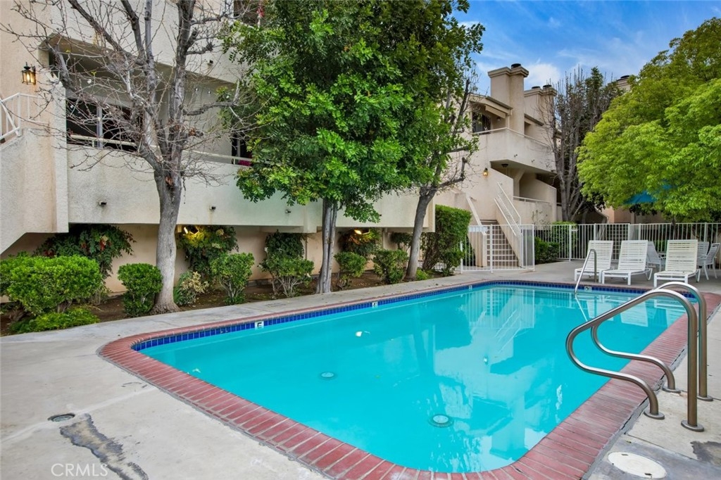 Poised within the lovely Southpointe Villas of sought-after Reseda, make new memories in this beautiful 3-bedroom, 2-bathroom condo complete with a private garage! Ascend the first-floor walkup and be greeted with a bright and vibrant 1,189-sqft floorplan featuring pristine laminate flooring throughout and plenty of built-in storage space. Entertaining is easy in this splendorous living room as a raised hearth fireplace creates a cozy ambiance to relax in while the private balcony makes for a perfect outdoor seating addition with views of the courtyard below. Stone tile floors line this user-friendly kitchen equipped with new appliances, including the free-stranding stove and refrigerator, neat cabinetry, and sleek tile countertops, and provides a charming dining nook to savor each delicious meal. All bedrooms include generous closet storage space and center ceiling fans while the airy primary bedroom enjoys the exclusive benefit of a walk-in closet plus a private en-suite split bathroom with a new shower. Residents of Southpointe are welcome to indulge in the glittering waters of the refresh community pool and restorative spa, perfect weekends at home. Located on a corner lot, this home is just minutes from Reseda High, Pierce College, Westfield Topanga & The Village, the Warner Center, local markets, restaurants, freeways, and north of the bustling Ventura Blvd!