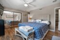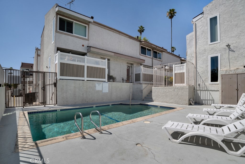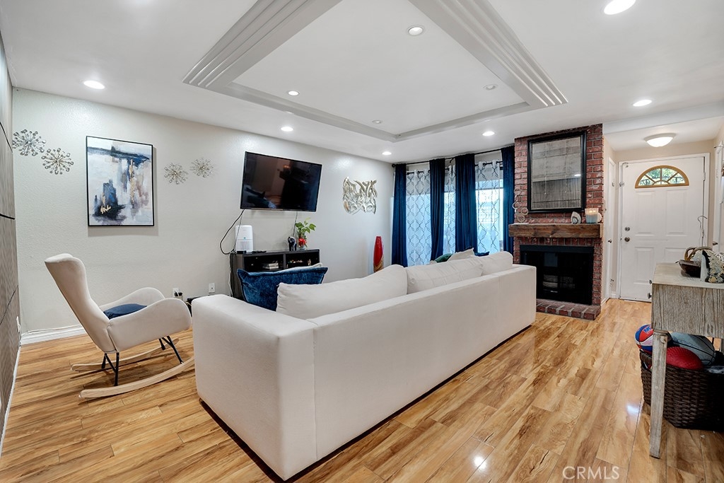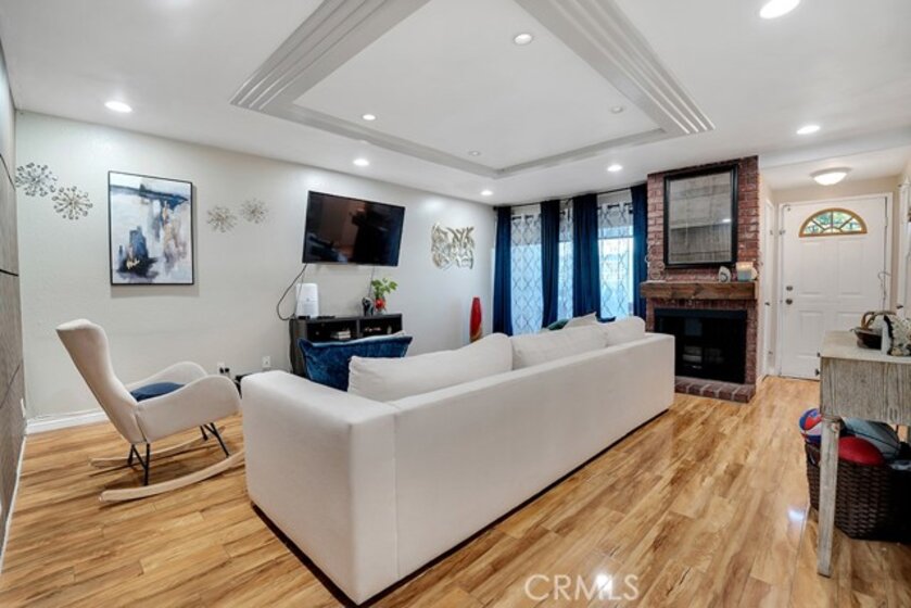 Welcome to this beautiful, spacious townhouse located in a gated community with a resort-style pool. This fully upgraded, move-in ready home features 3 bedrooms with custom closet organizers and 2.5 bathrooms, including a true primary suite with a remodeled bath and generous closet space. The expansive living room showcases a brick façade gas fireplace and opens to a private, cozy patio. The stunning white kitchen has been thoughtfully updated with soft-closing raised-panel cabinetry, under-cabinet lighting, granite countertops, and a matching backsplash. Additional upgrades include American olive laminate wood flooring, dual-pane energy-efficient windows (installed in 2019), recessed LED lighting, upgraded AC ducting, and 4-inch baseboards throughout. Each bedroom is equipped with its own ceiling fan, and the bathrooms have been modernized with low-sone exhaust fans. The attached 2-car garage offers direct access and features built-in wall and floor cabinetry, along with approximately 20 linear feet of laminate countertop workspace. A versatile bonus room at the garage entry level provides the perfect space for an office, gym, media room, or hobby area. The washer and dryer are conveniently located inside the unit. Pride of ownership is evident throughout, with the community pool just steps away—completing this exceptional offering.