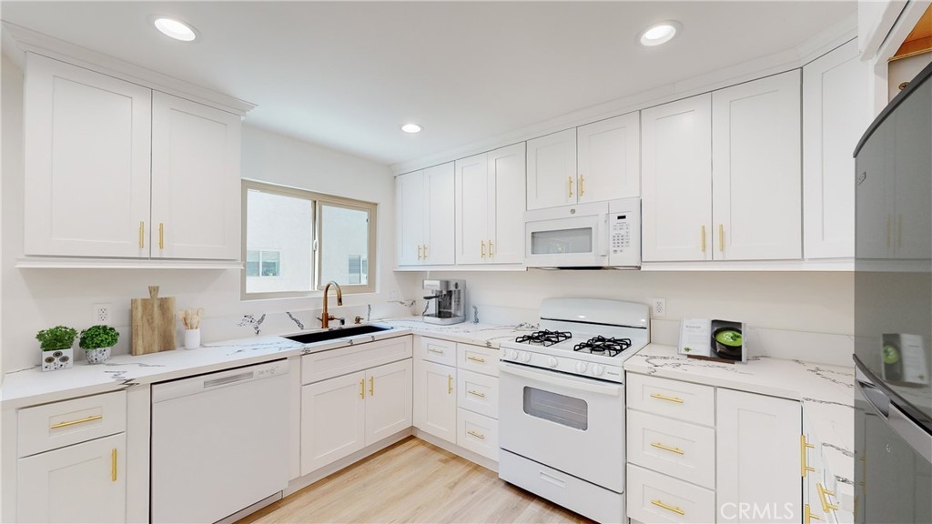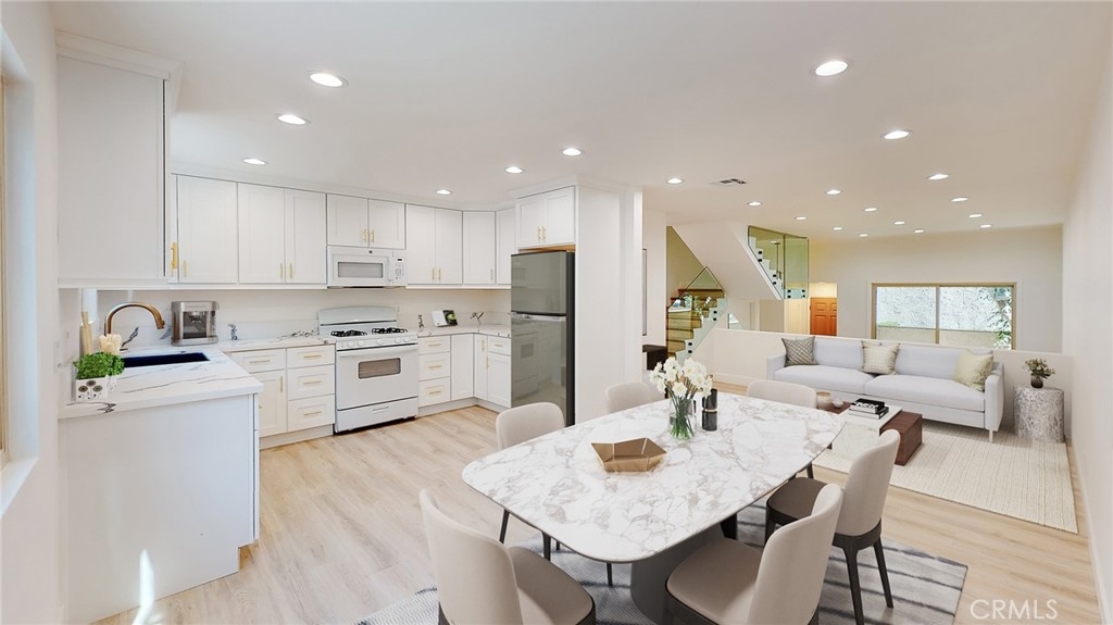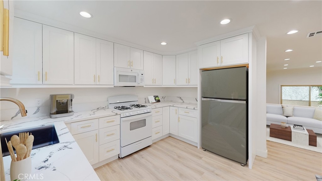 Just minutes from Calabasas and Home of the movie Karate Kid. This completely renovated, fresh, and sparkling clean 2 bed, 2 bath, 1319 sq ft split-level townhome is located in the highly desirable community of Reseda. Freshly painted, new kitchen and new windows and much more. Upon entering, you're greeted by a formal entry with high ceilings that lead to an open and airy living room, complete with a sliding glass door providing access to a private, enclosed patio—ideal for grilling and outdoor entertainment. Step up to the mid-level, where the combination kitchen and dining area continues the open feel. The kitchen boasts ample storage with a chic and modern feel of white cabinets and stylish countertops. Upstairs, the master bedroom features a walk-in closet, a private balcony, and direct access to completly update bathroom with large walk in shower. An additional sizable bedroom also includes a walk-in closet. The dedicated laundry area is conveniently located upstairs. The private 2-car garage with additional storage offers direct access to the unit. Community amenities include park-like grounds with verdant trees, multiple swimming pools spa, gym and rec room. HOA dues cover water, pest control, landscaping. annual tree trimming and earthquake insurance. Located near shops, restaurants, and recreational facilities, this beautifully updated townhome at Sherman Way is ready to be your new home!