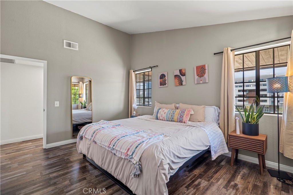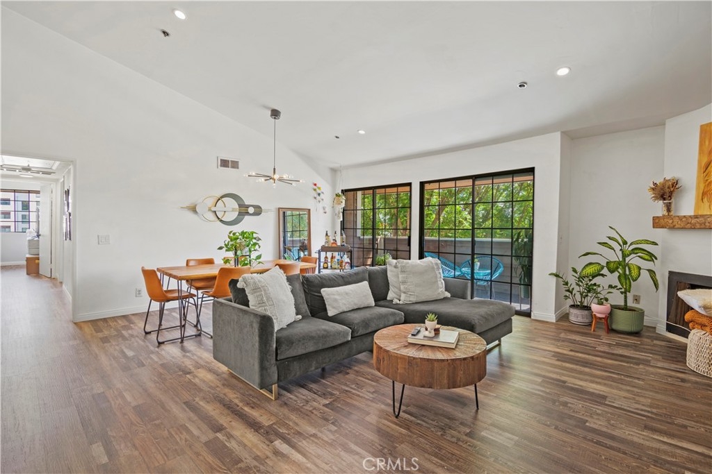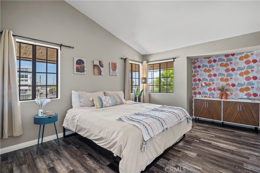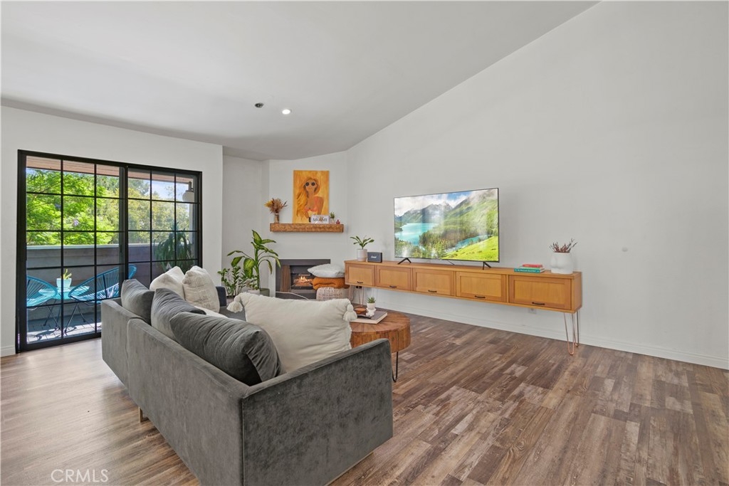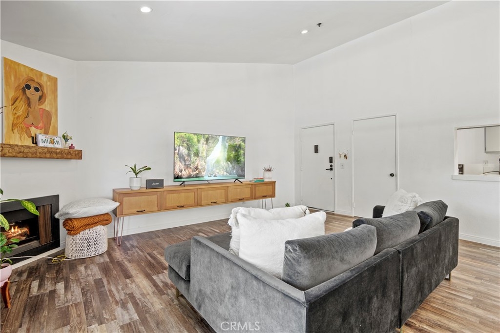 Updated Top Floor 2 Bed 2 Bath condo in Reseda. The unit features vaulted ceilings, recessed lights and new laminate floors throughout. The large open floor plan is great for entertaining. Sliding door leads out to a full length balcony overlooking the lake at Reseda Park. Kitchen is updated with quartz counter-tops and stainless steel appliances. Master bedroom has high ceilings, walk-in closet ensuite bathroom with new dual vanity and shower enclosure with custom tile work. Guest bedroom has a full length closet and views of the LA River. In-unit stackable washer/dryer closet. 2 parking spaces in a secured underground garage. Dont miss this opportunity!