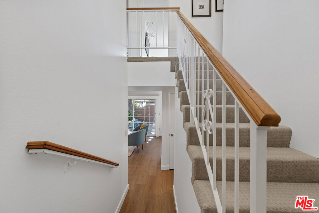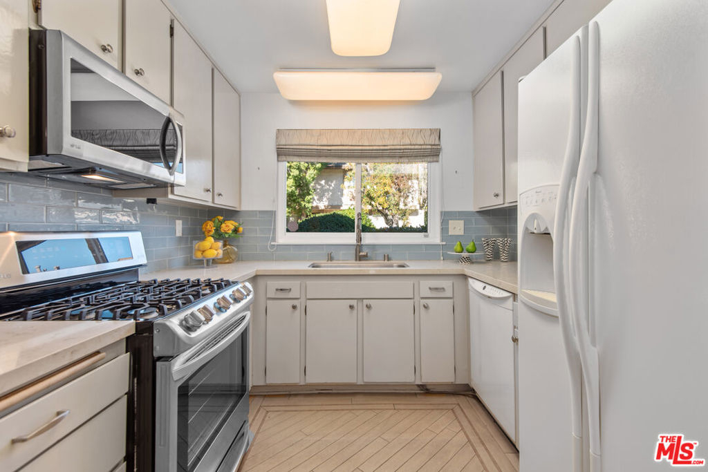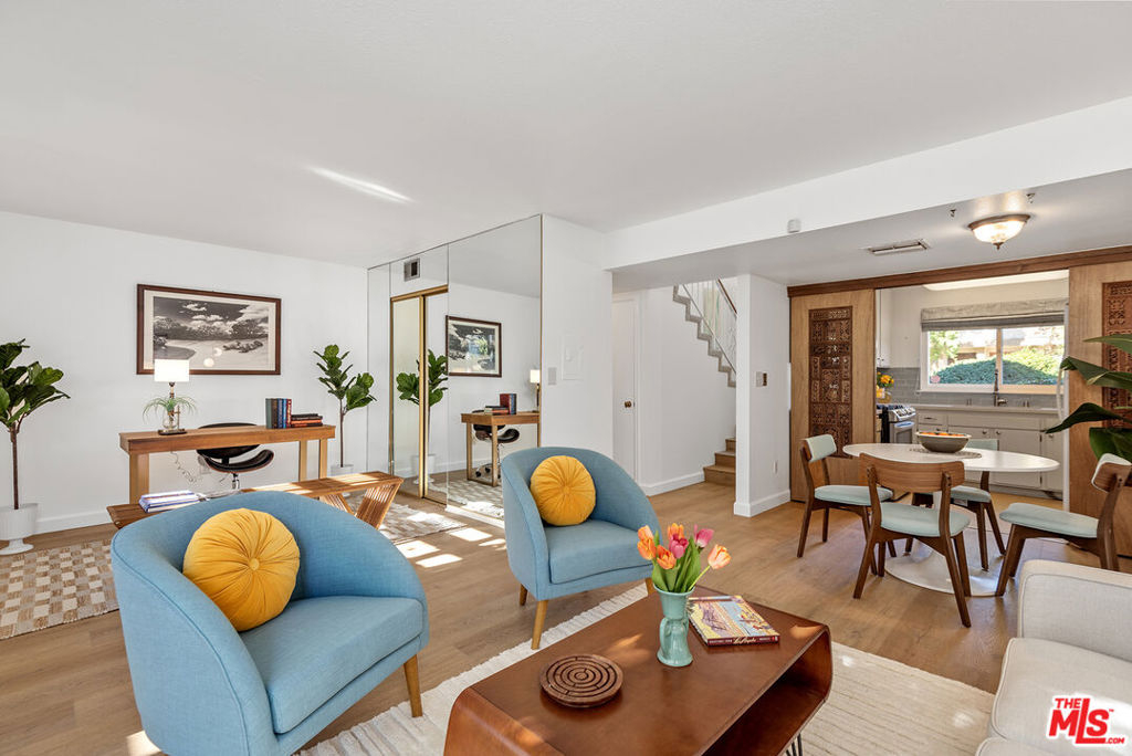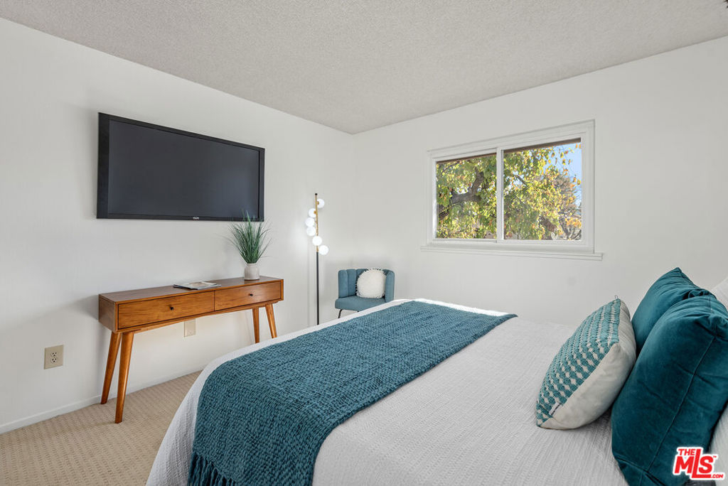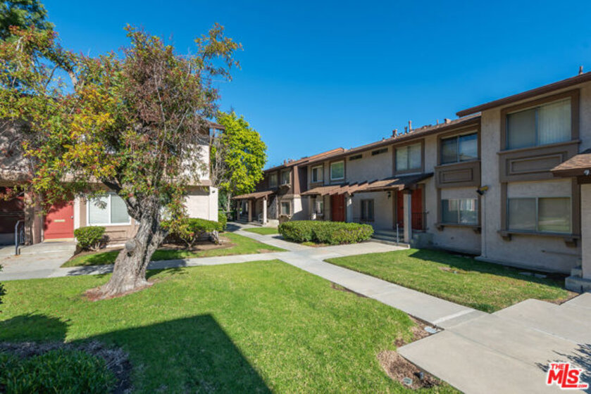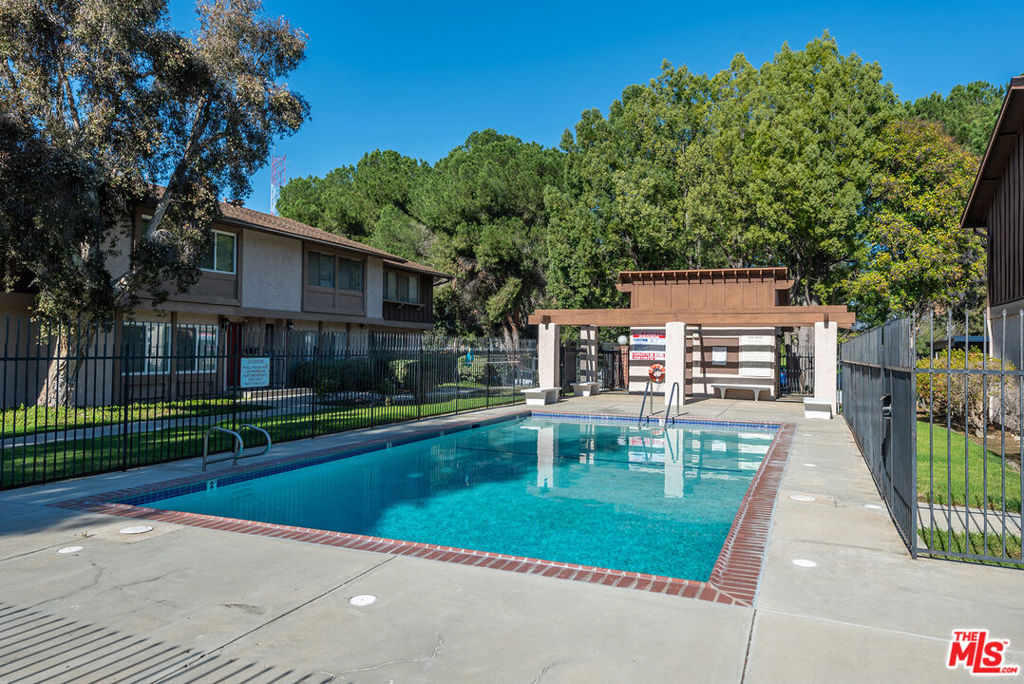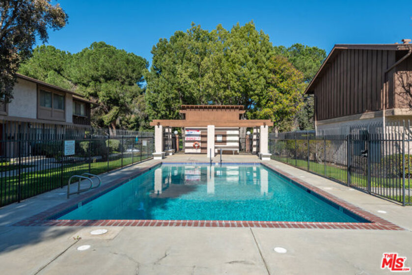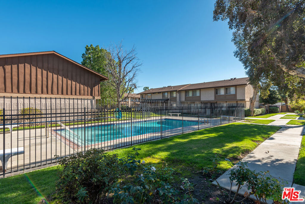 As you enter the light-filled formal entry, you won't be able to decide if you want to ascend the stairs and view the 3 lovely bedrooms or begin touring the first floor! Tastefully remodeled, this wonderful 2-story, 3 bedroom, 2 bath end-unit townhome is move-in ready. New flooring and recently painted, it is fresh, light, bright and welcoming. The well-appointed kitchen overlooks the greenspace of the meticulously maintained grounds. Living room and den/office areas access the enclosed patio, bringing the outside in. This unit is ideal for entertaining, al fresco dining and just relaxing under the shade of the tree. Includes stove, washer/dryer, refrigerator and dishwasher. Two side by side parking spaces in attached carport. Beautiful community pool, complex is directly across the street from the Randal D. Simmons Park. Great location, minutes away from the Northridge Fashion Center Mall, Westfield Mall, The Village at Topanga, Warner Center, and lots of wonderful restaurants.