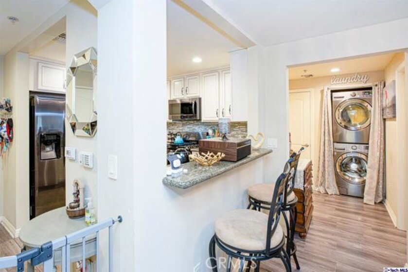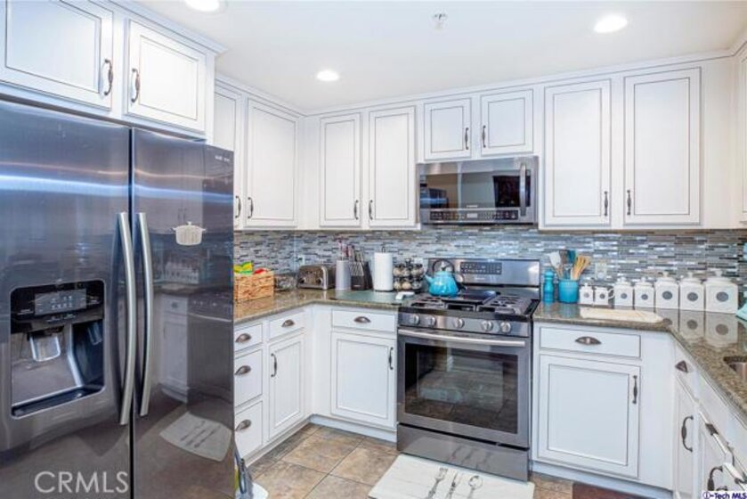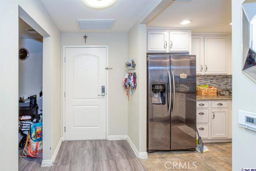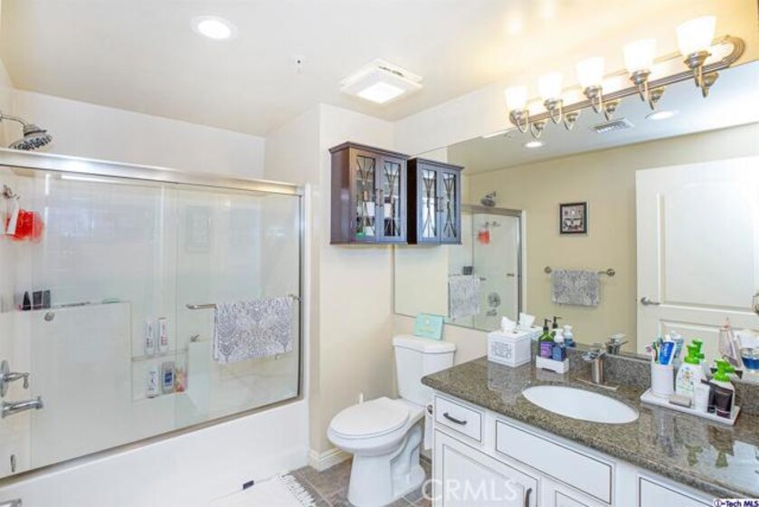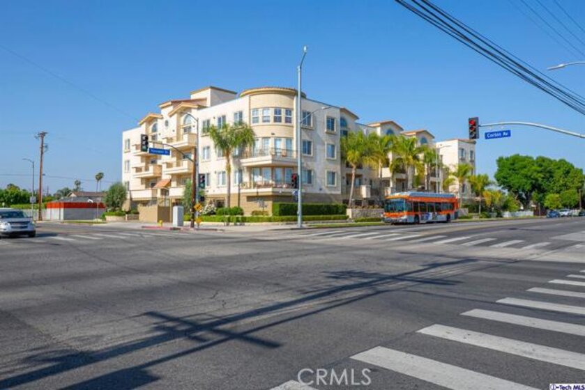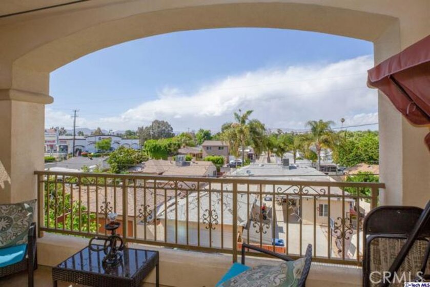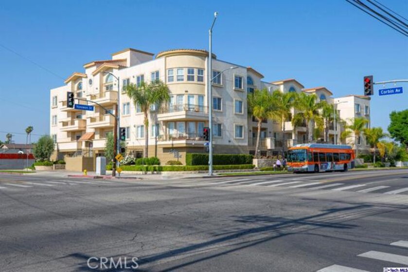 Welcome to this updated condo located in a wonderful location of Reseda! This security building has so much to offer including six guest parking spots plus one handicap parking spot inside the garage, two back to back parking spots inside the garage, rooftop area where you can entertain family and friends, brand new security cameras throughout the building, elevator for easy access, two stairways from each side of the building, gated garden in the back of the building, trash shoot and so much more! This second floor unit includes grey laminate floors in the living room and bedrooms, tile floors in the bathrooms, new recess lighting in both bedrooms, chandelier in the dining room, master bedroom with an on-suite bathroom which includes a separate stand up shower and tub and his and her sinks. The master bathroom also has a large walk in closet! The second bedroom also includes a walk in closet. The kitchen has stainless steel appliances including a refrigerator, range with hood, microwave and dishwasher. The kitchen features white cabinetry with bronze hardware and new backsplash. If there isn't enough space for entertaining in the rooftop area of this complex, there is a private balcony just for the unit that can also be used for entertaining friends and family, which has a hookup for overhead lights. Double pane windows with roller shades throughout the house and a Brinks alarm system! Low HOA of $376.13 per month. Don't miss out!