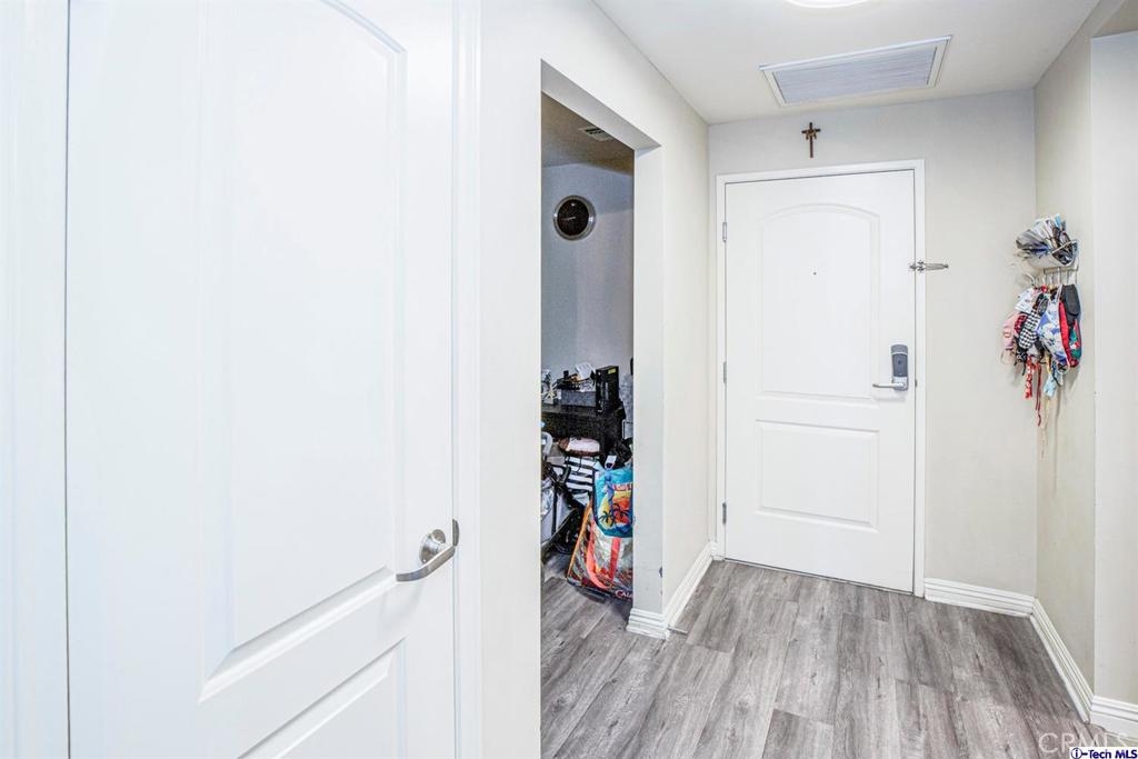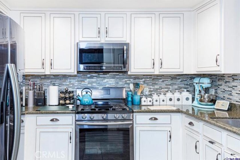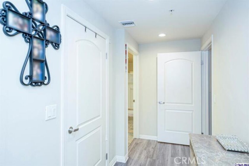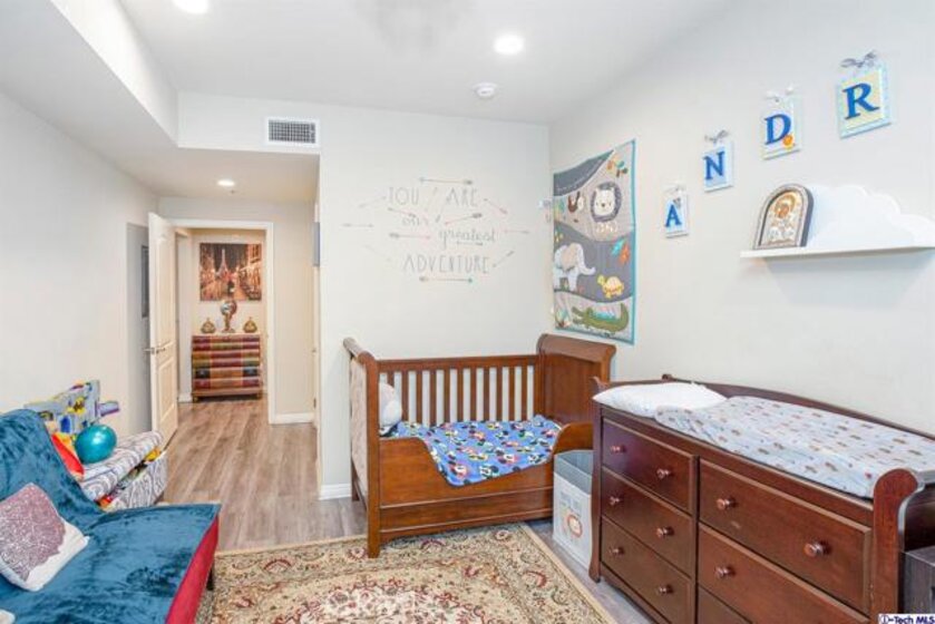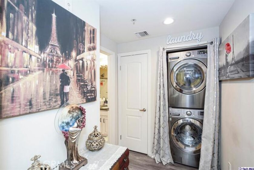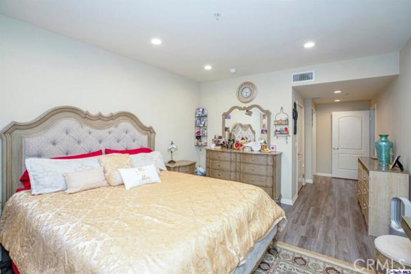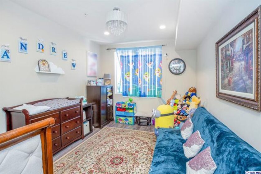 Welcome to this updated condo located in a wonderful location of Reseda! This security building has so much to offer including six guest parking spots plus one handicap parking spot inside the garage, two back to back parking spots inside the garage, rooftop area where you can entertain family and friends, brand new security cameras throughout the building, elevator for easy access, two stairways from each side of the building, gated garden in the back of the building, trash shoot and so much more! This second floor unit includes grey laminate floors in the living room and bedrooms, tile floors in the bathrooms, new recess lighting in both bedrooms, chandelier in the dining room, master bedroom with an on-suite bathroom which includes a separate stand up shower and tub and his and her sinks. The master bathroom also has a large walk in closet! The second bedroom also includes a walk in closet. The kitchen has stainless steel appliances including a refrigerator, range with hood, microwave and dishwasher. The kitchen features white cabinetry with bronze hardware and new backsplash. If there isn't enough space for entertaining in the rooftop area of this complex, there is a private balcony just for the unit that can also be used for entertaining friends and family, which has a hookup for overhead lights. Double pane windows with roller shades throughout the house and a Brinks alarm system! Low HOA of $376.13 per month. Don't miss out!